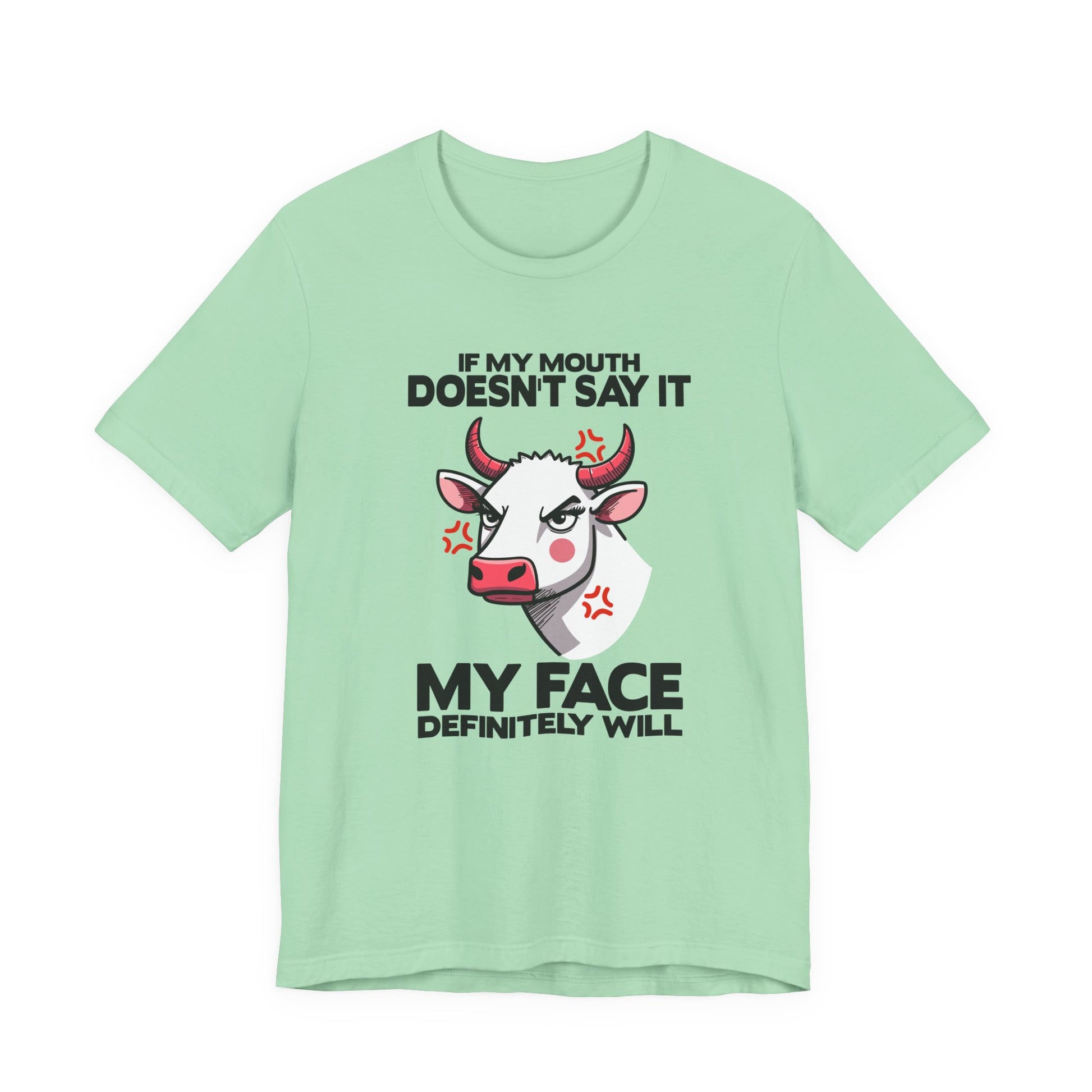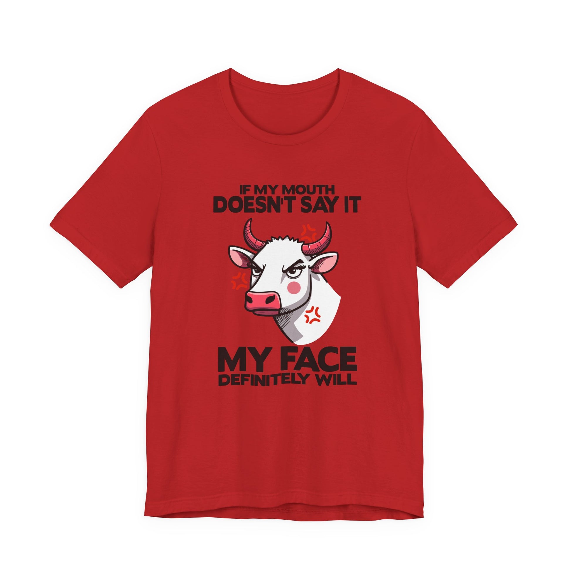 If My Mouth Doesn't Say It, My Face Definitely Will Bull T Shirt with Staring Bull Graphic