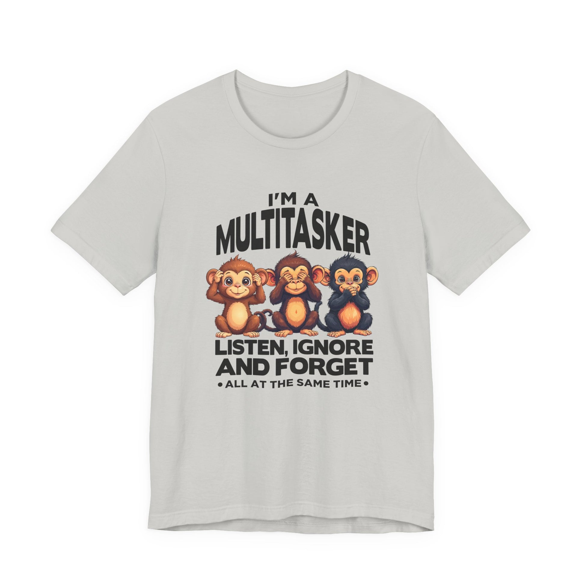 I'm a Multitasker Tshirt – Listen, Ignore, and Forget with Three Wise Monkeys Graphic