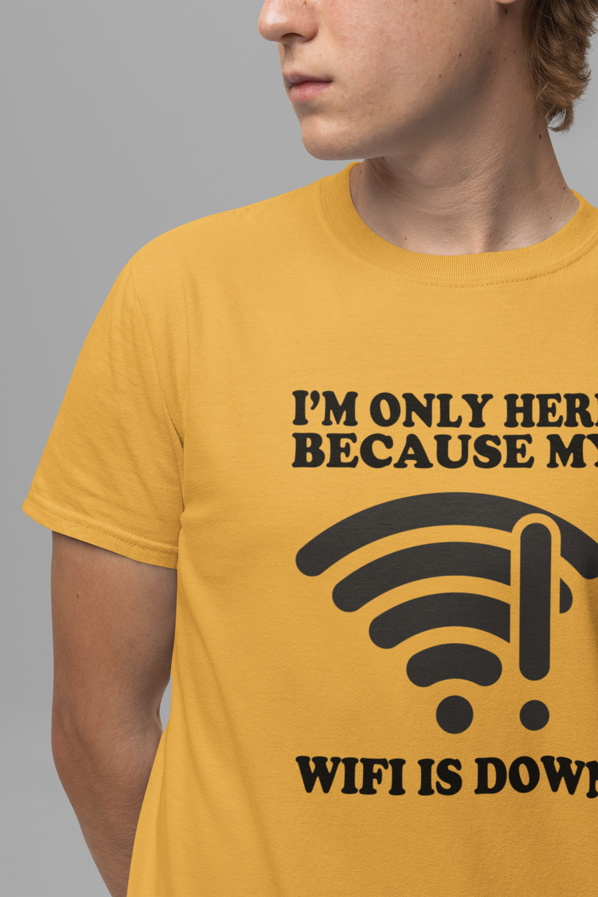I'm Only Here Because My WiFi Is Down – Funny WiFi Down Symbol Graphic T-Shirt