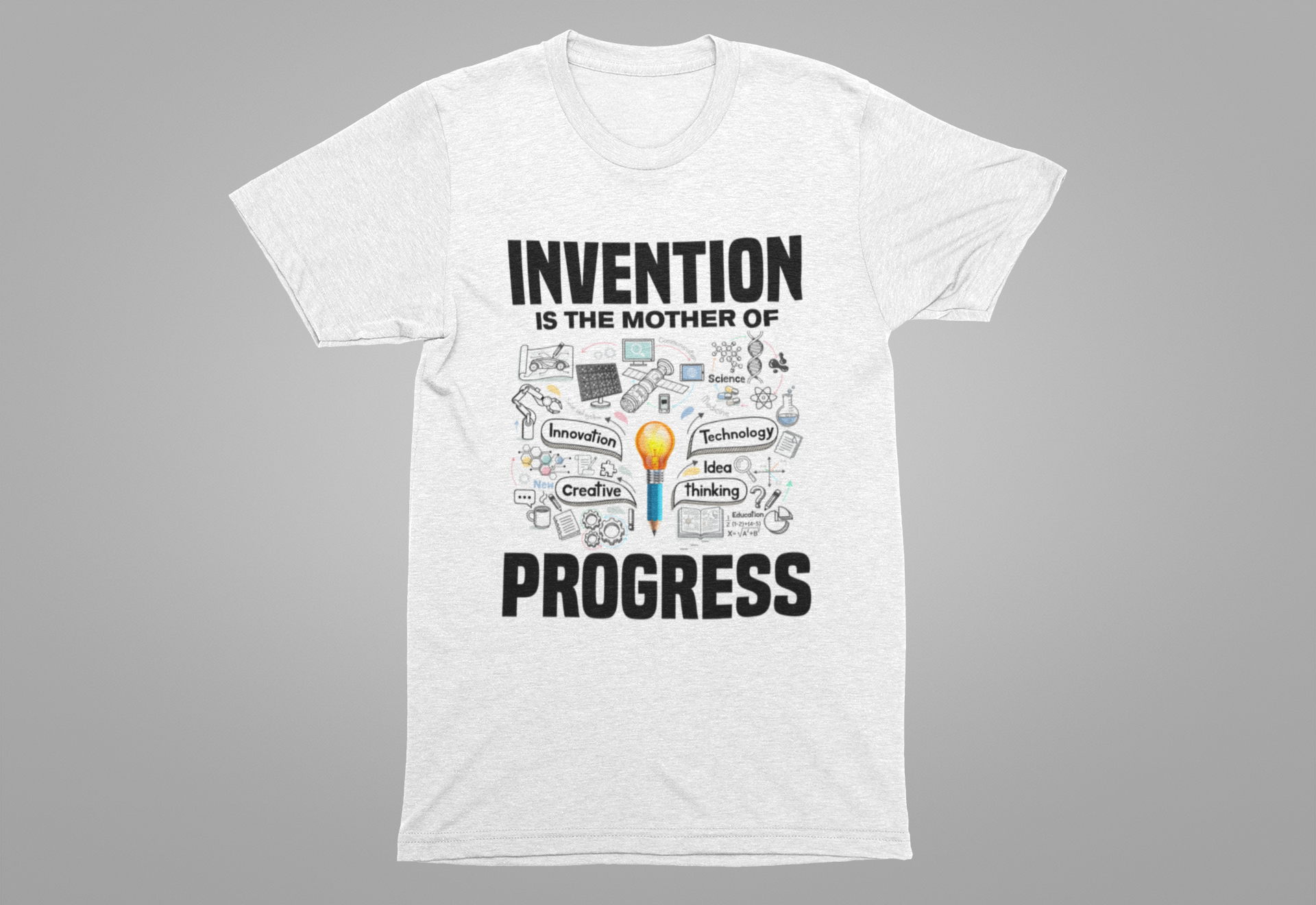 Invention is the Mother of Progress Tee, Innovation Quote Shirt, Science History Top, Progress Driven Graphic Tee, STEM Gift