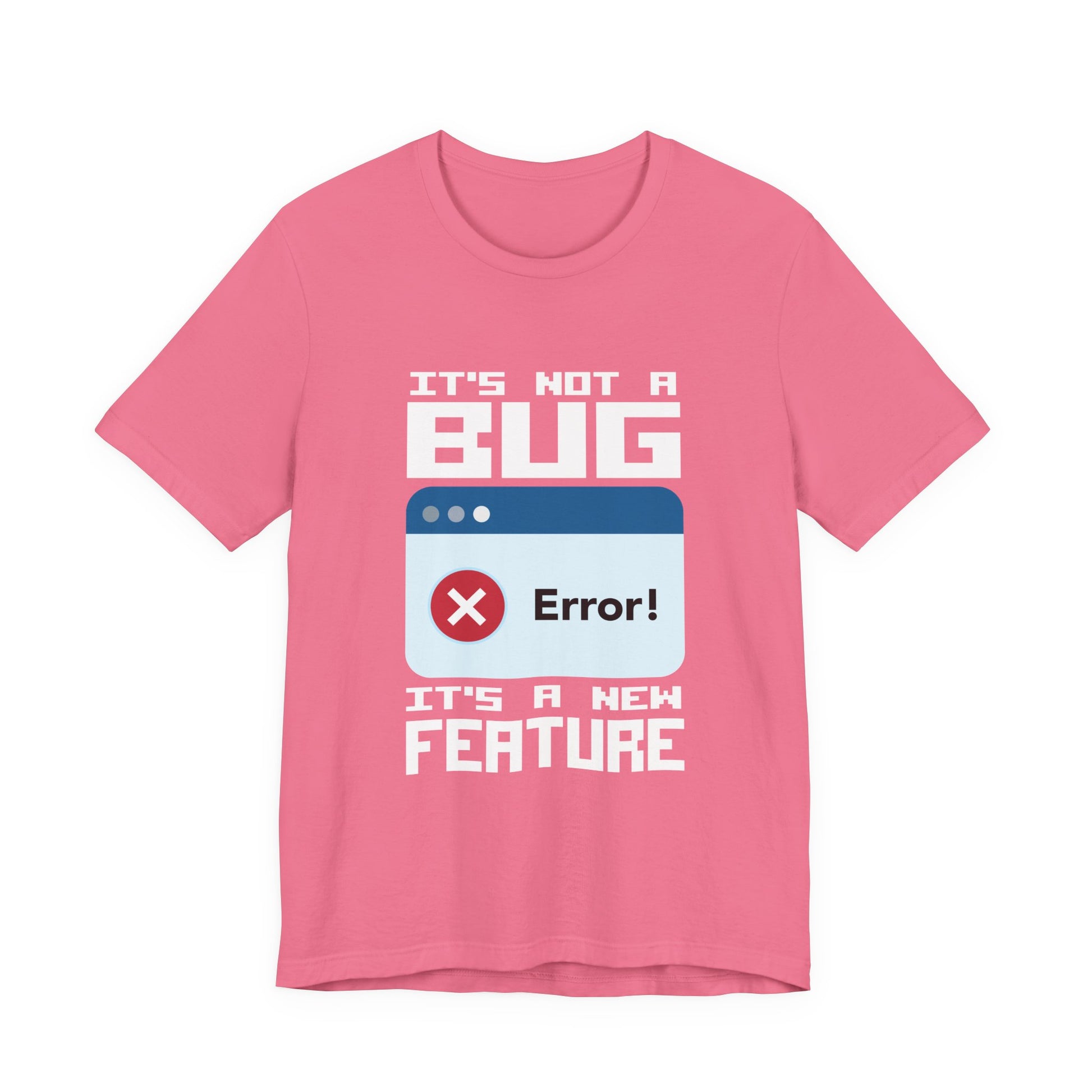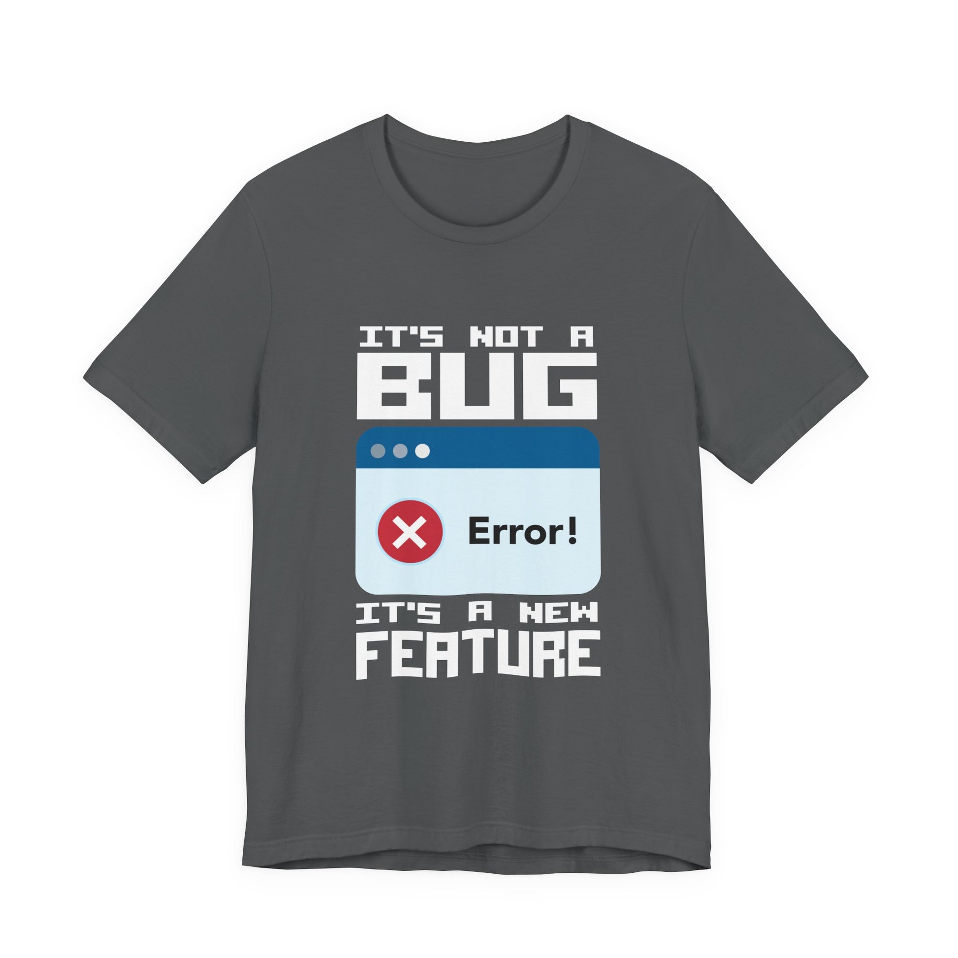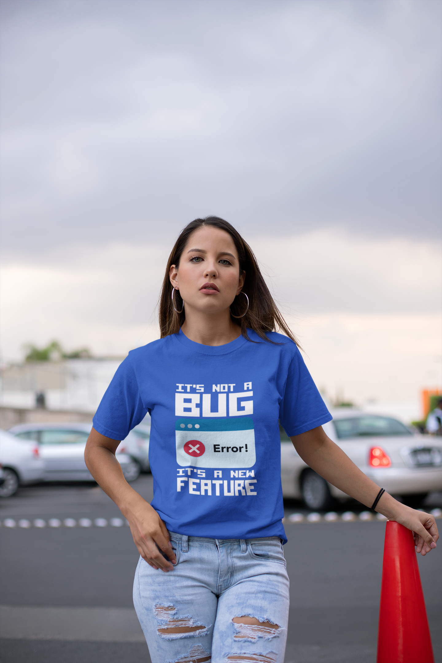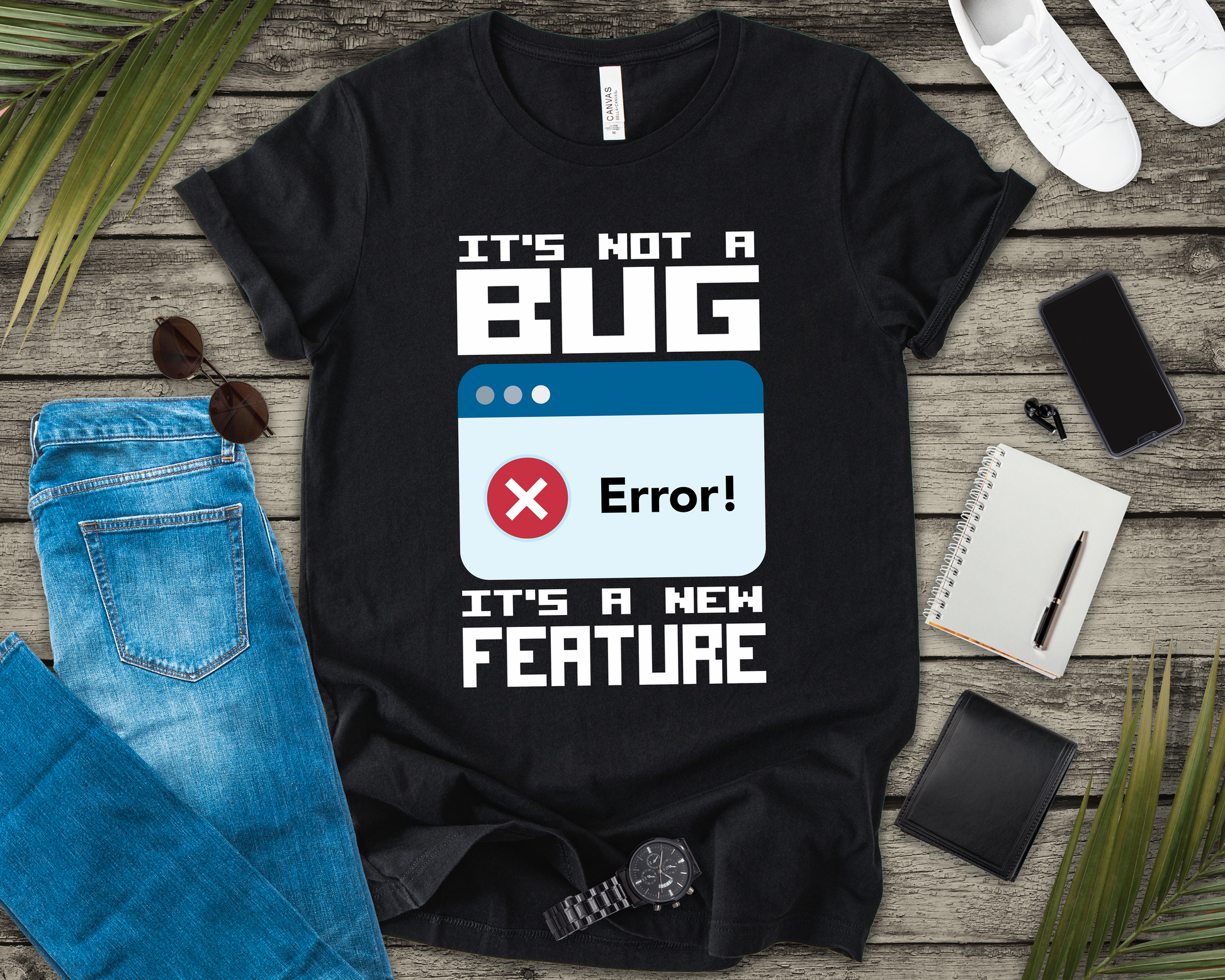 Showcase your coder wit with this classic and humorous t-shirt featuring an error pop-up graphic and the bold text “It's not a BUG, It's a new Feature.” Perfect for programmers, developers, and anyone who loves tech humor, this design is a fun way to embrace the quirks of software development. Made with comfortable, breathable fabric, it’s ideal for daily wear, tech meetups, or gifting to your favorite coder.