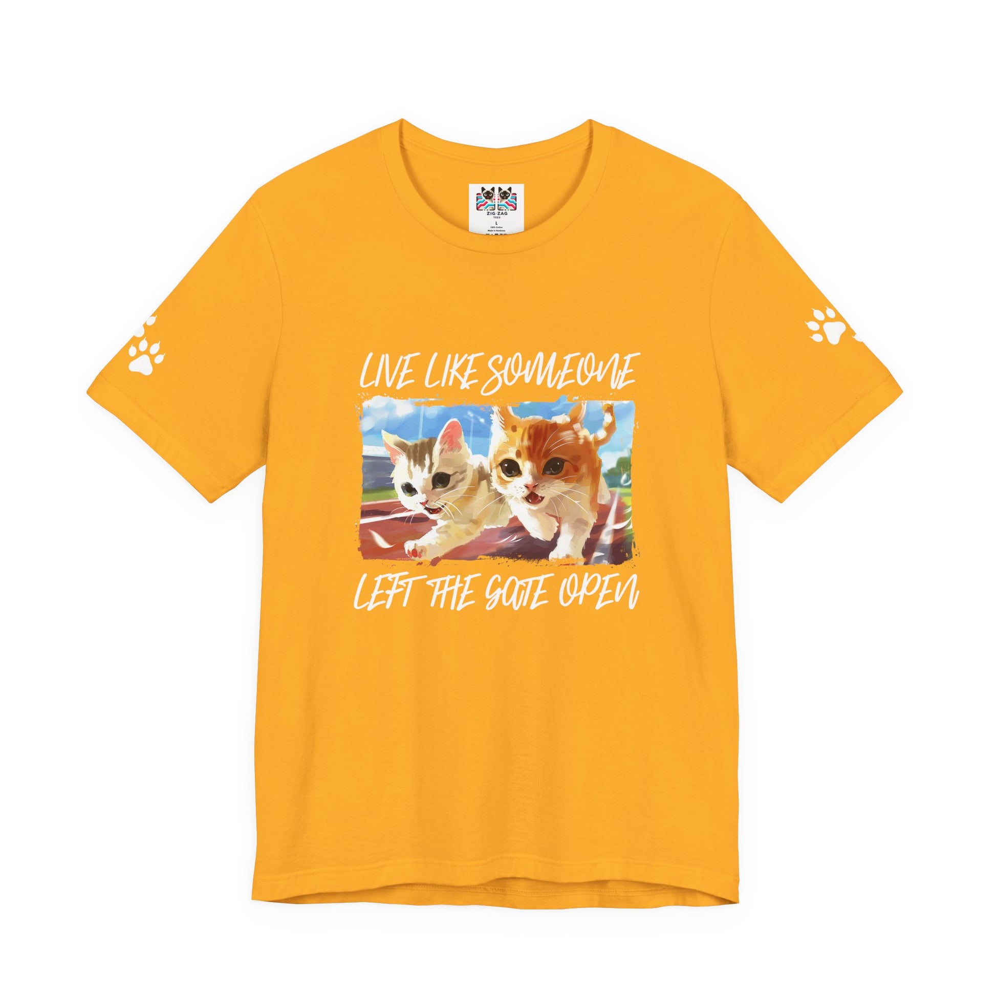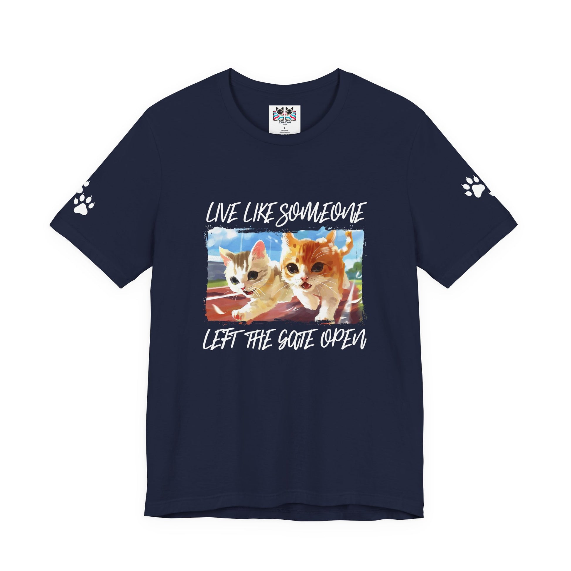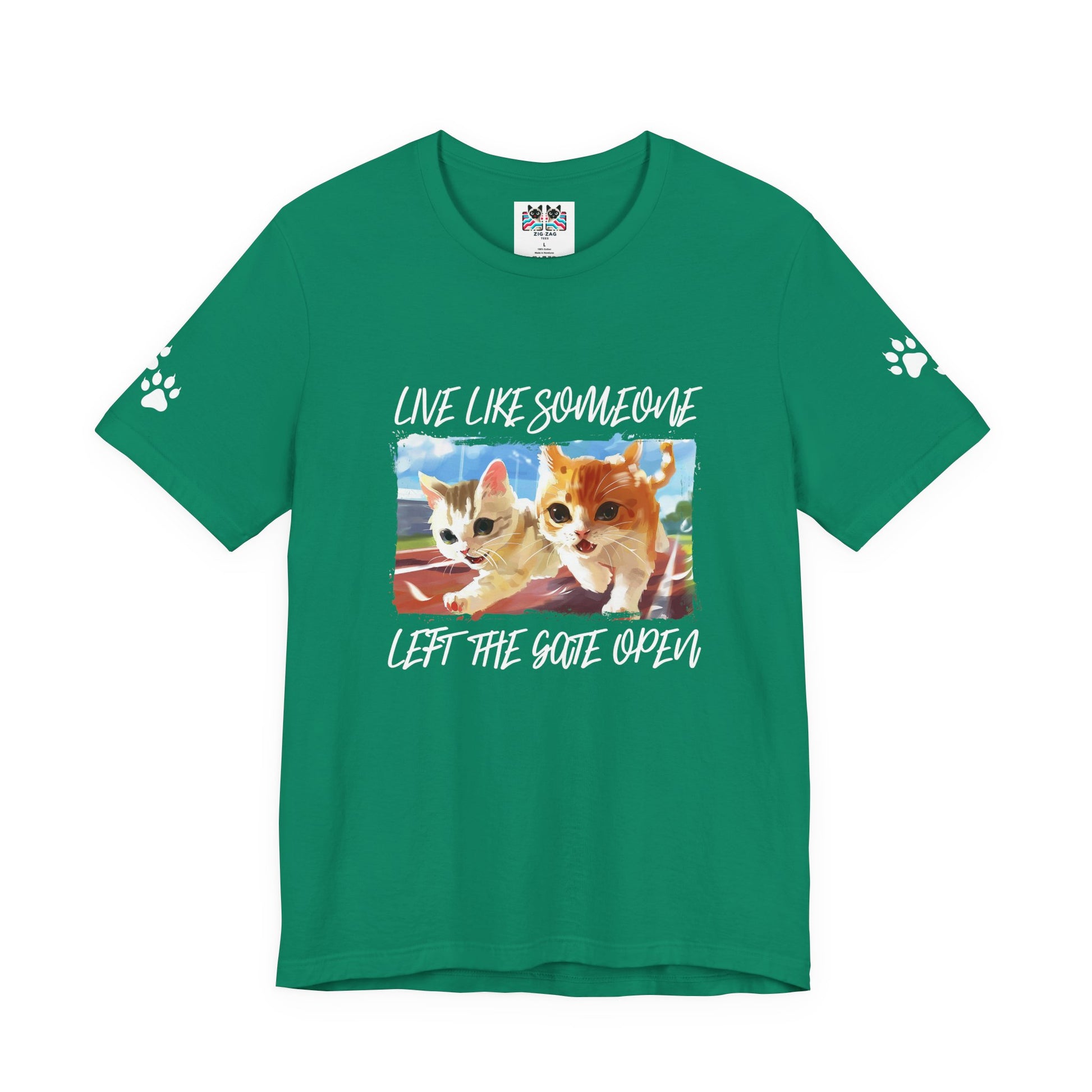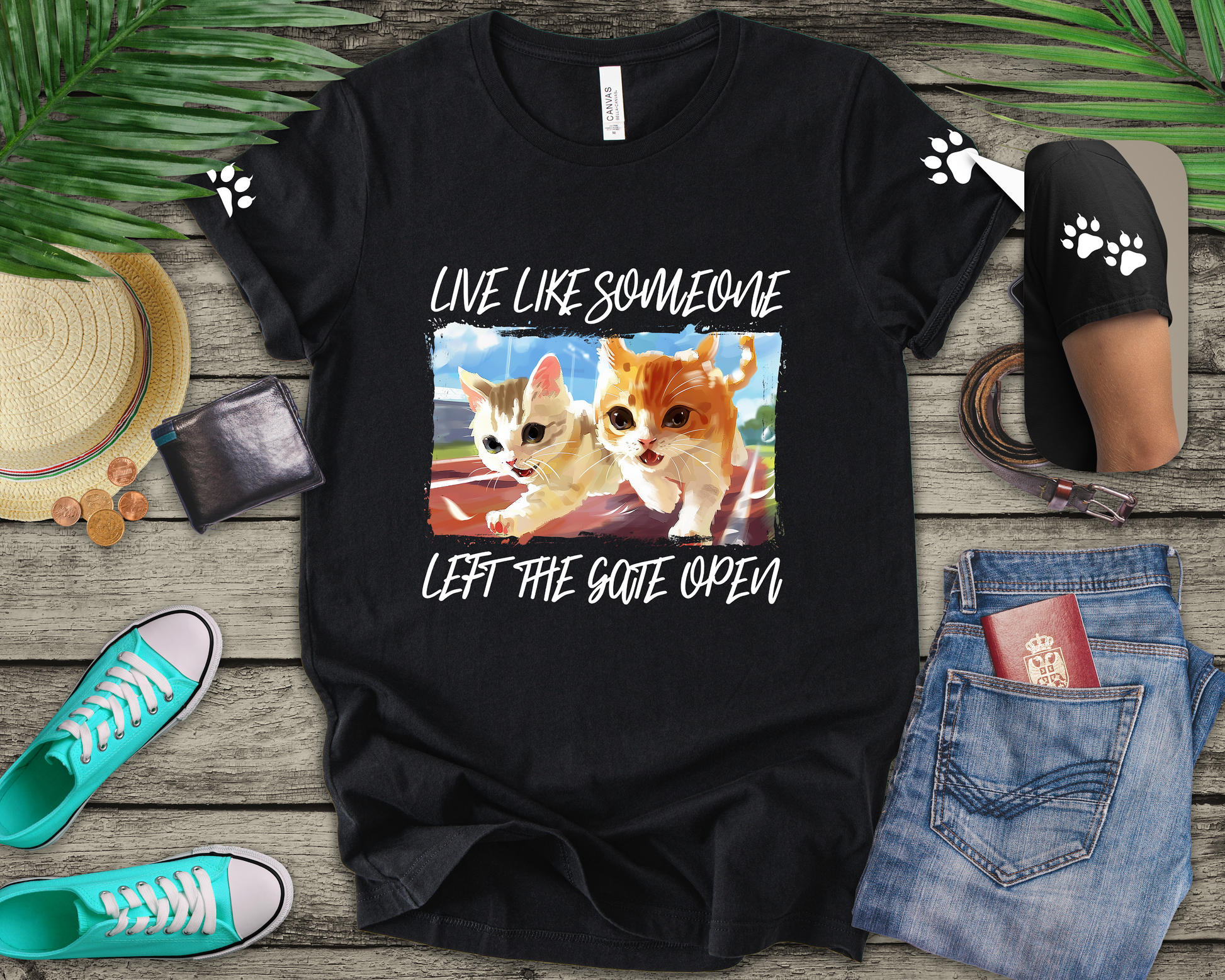 Live Like Someone Left the Gate Open T-Shirt – Running Kittens Freedom Adventure Quote Graphic Tee