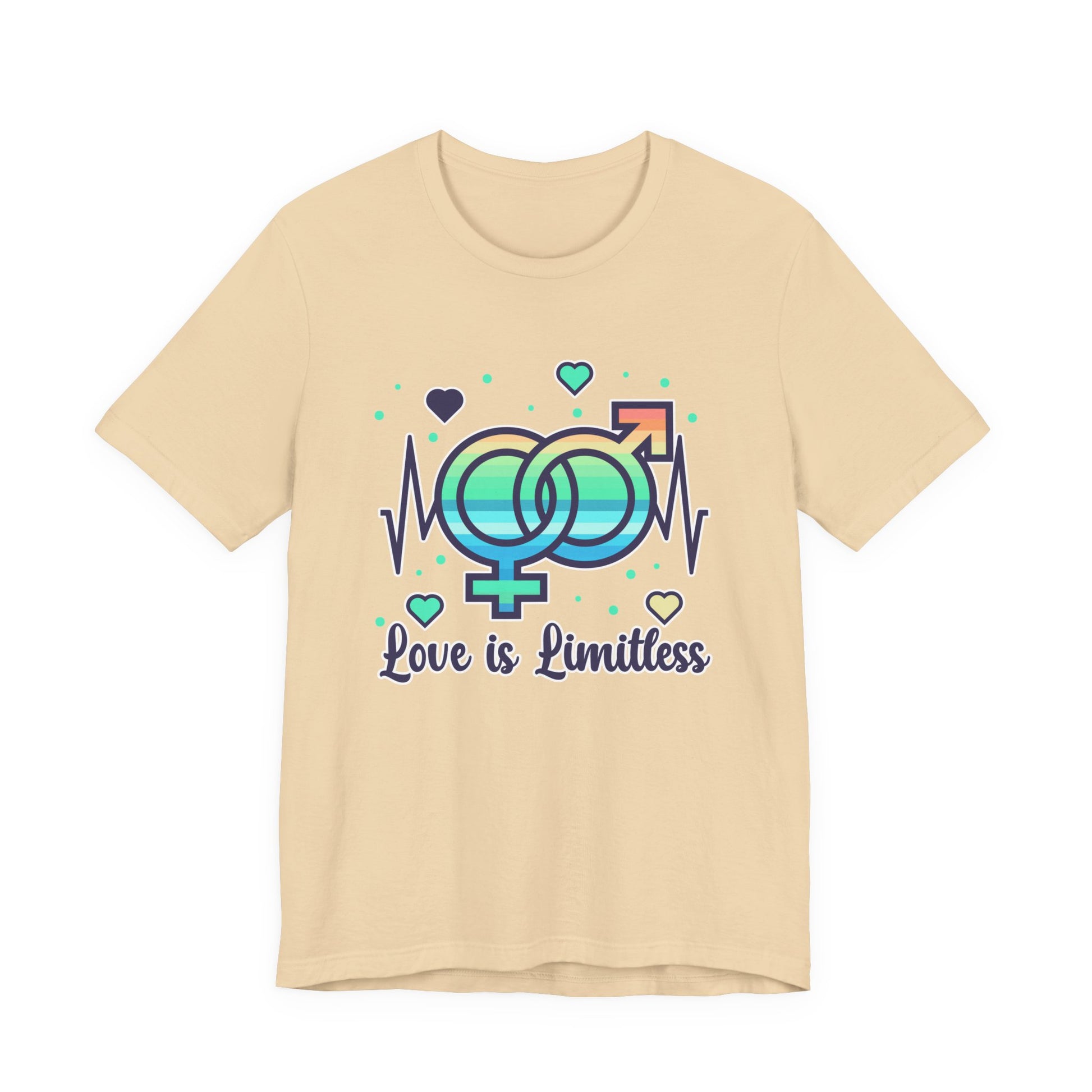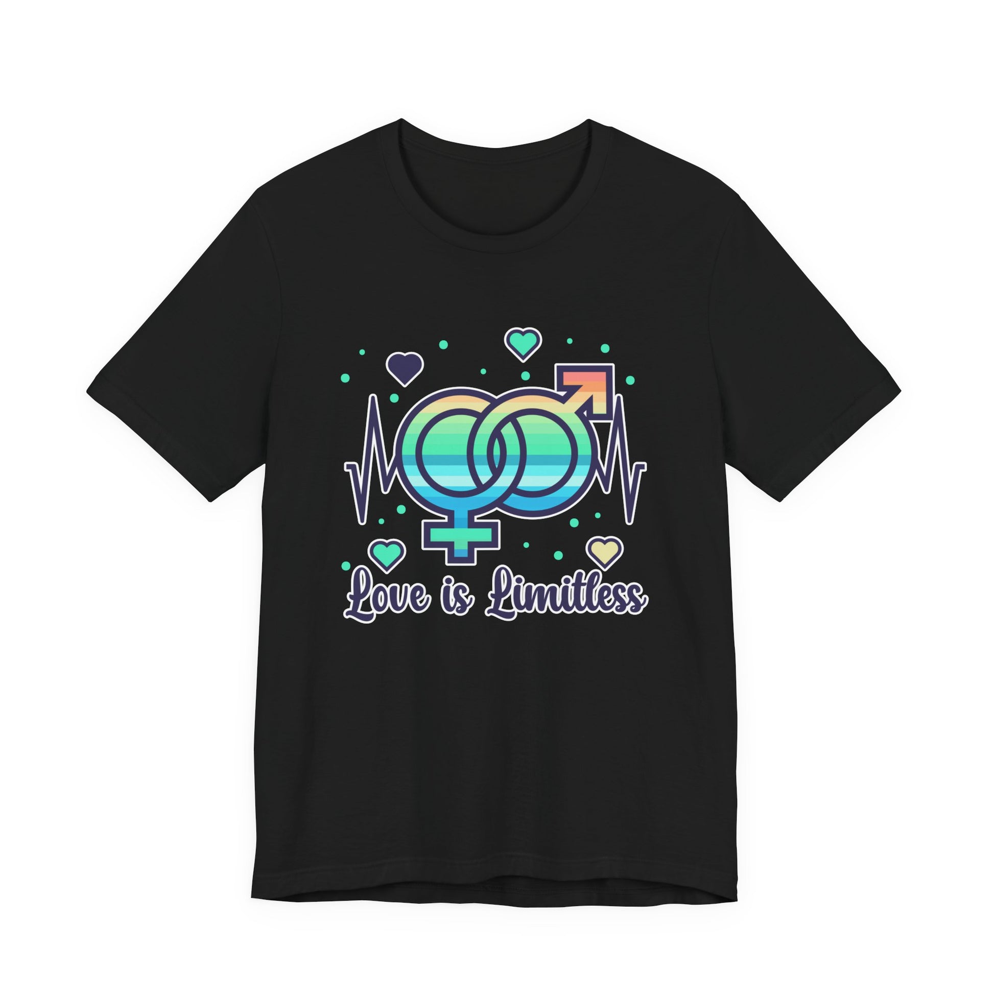 Love Is Limitless – Interconnected Gender Symbols & Heart Graphic T-Shirt