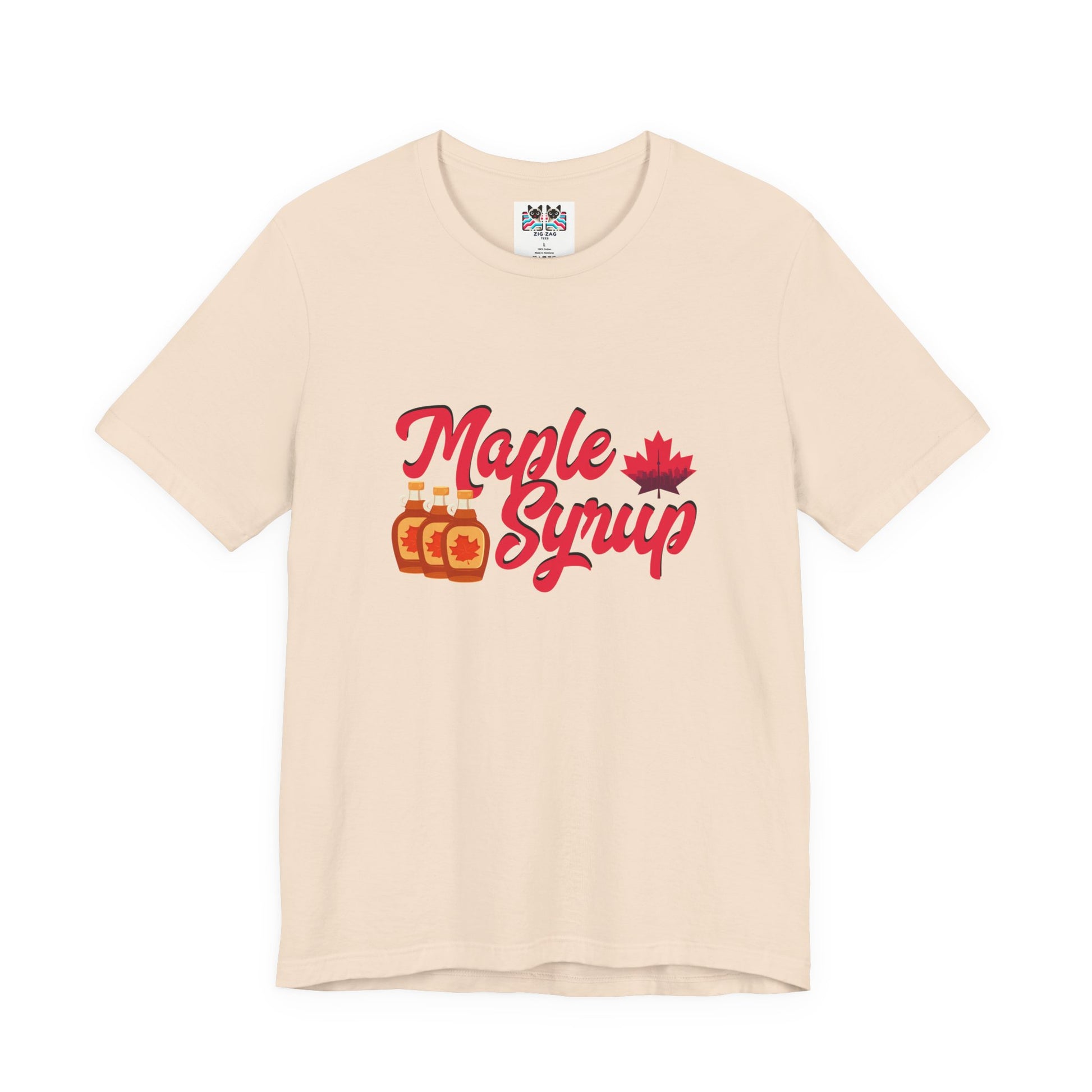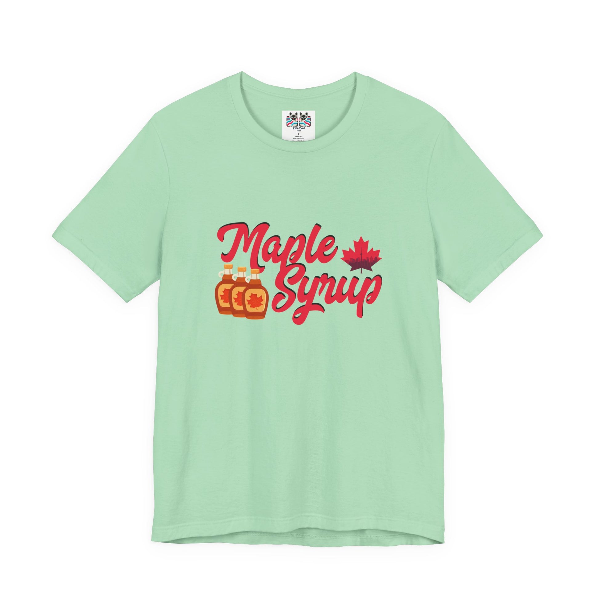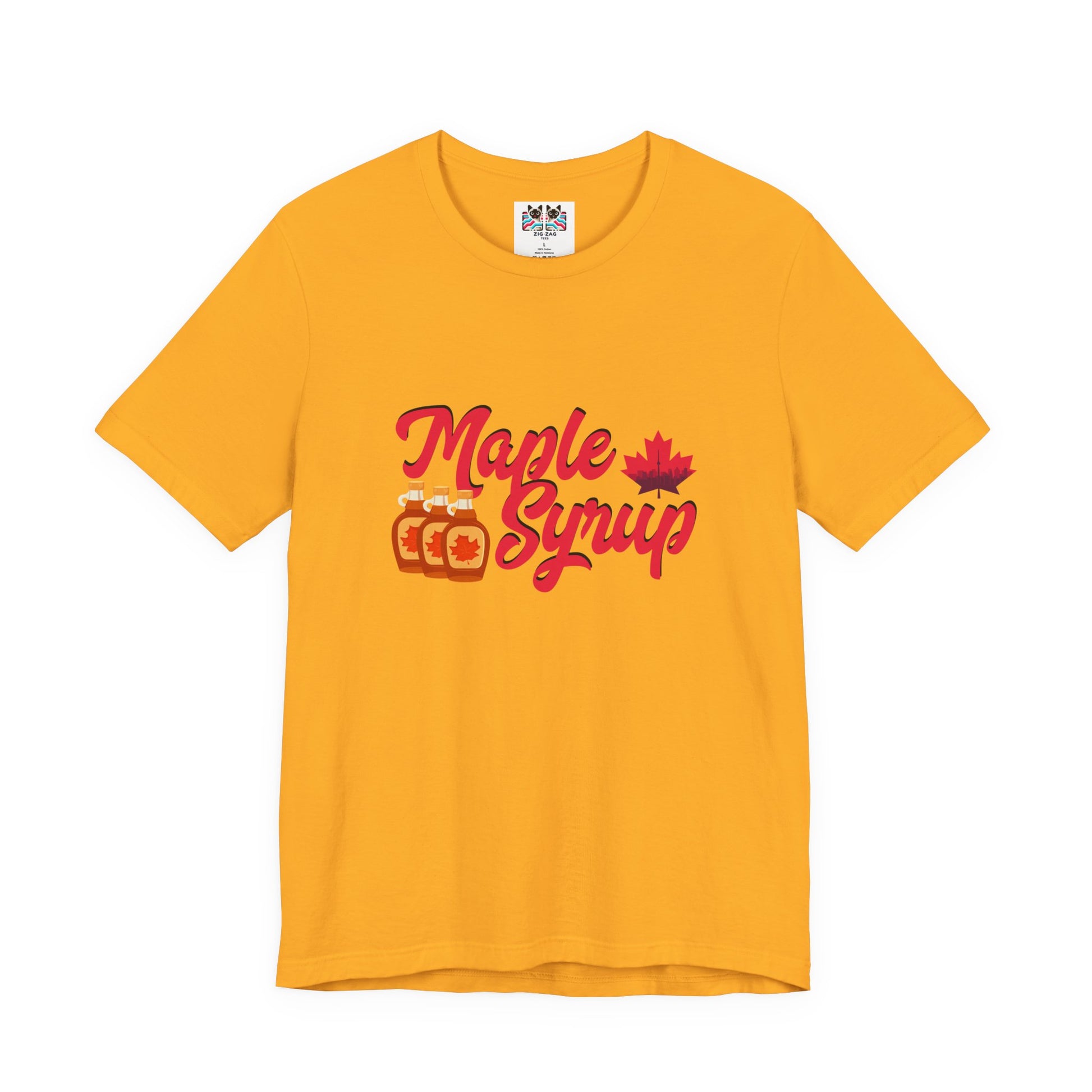 This sweet and cozy tshirt features a classic maple syrup bottle at the center, surrounded by simple graphics of waffles, pancakes, and a bowl of yogurt to show where this “liquid gold” is poured the most. Larger text “Maple Syrup” with a maple leaf beside it crowns the design, while a short content line describes maple syrup as a naturally sweet, slow-poured topping made from maple tree sap, perfect for breakfast lovers and proud maple fans.