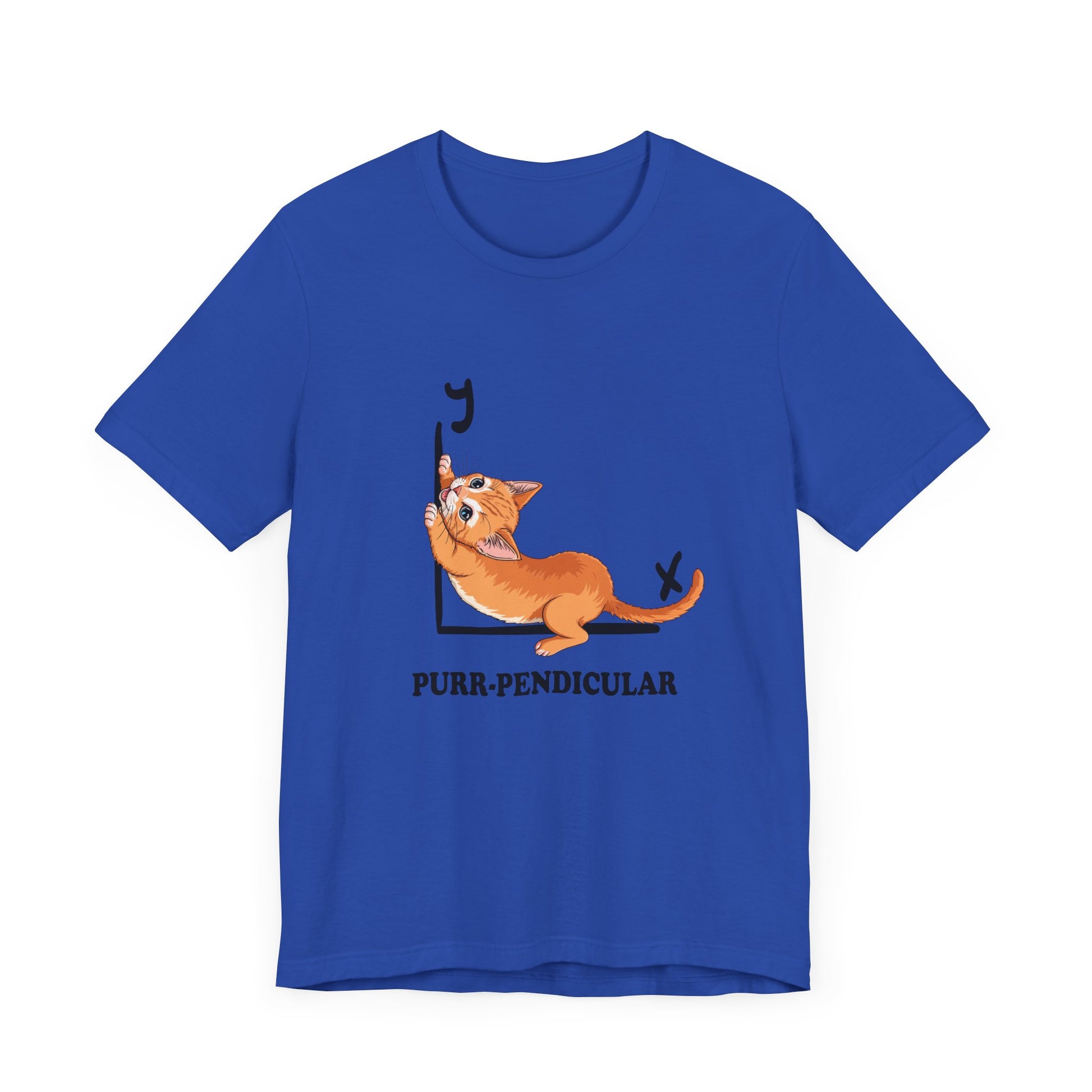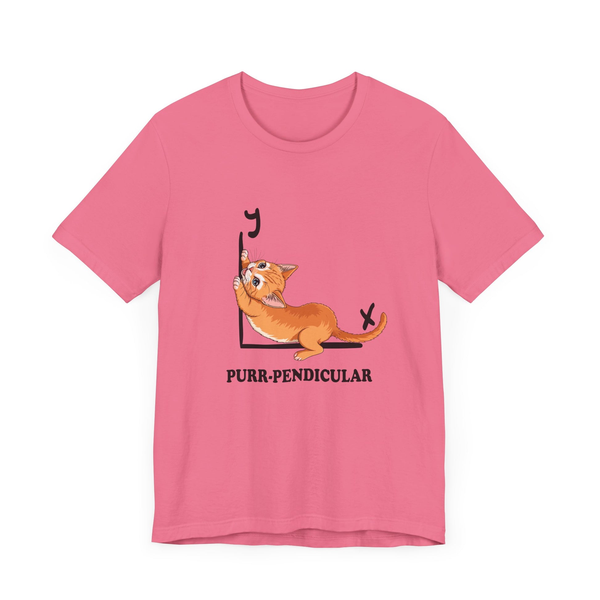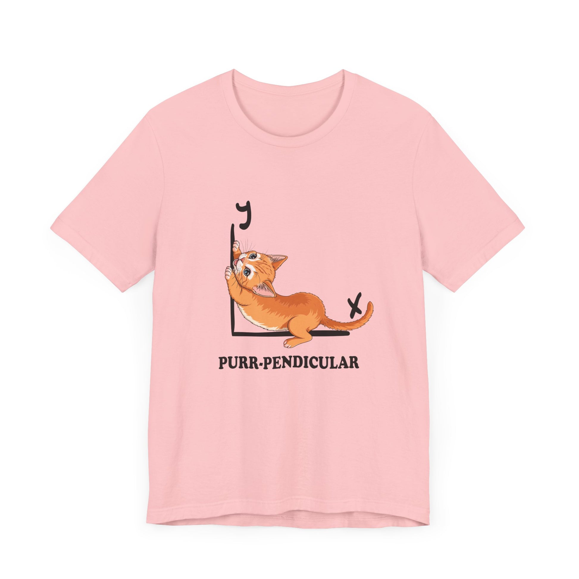 Add a playful twist to your math wardrobe with this “Purr-pendicular” t-shirt! Featuring an adorable orange cat stretching along the perpendicular x and y axes, this clever design brings together math humor and feline charm. Perfect for math lovers, teachers, students, and anyone who enjoys a good pun, this tee is sure to get smiles in the classroom or anywhere you go. The cute cat illustration and bold “Purr-pendicular” text make it a standout gift for cat fans and geometry geeks alike.