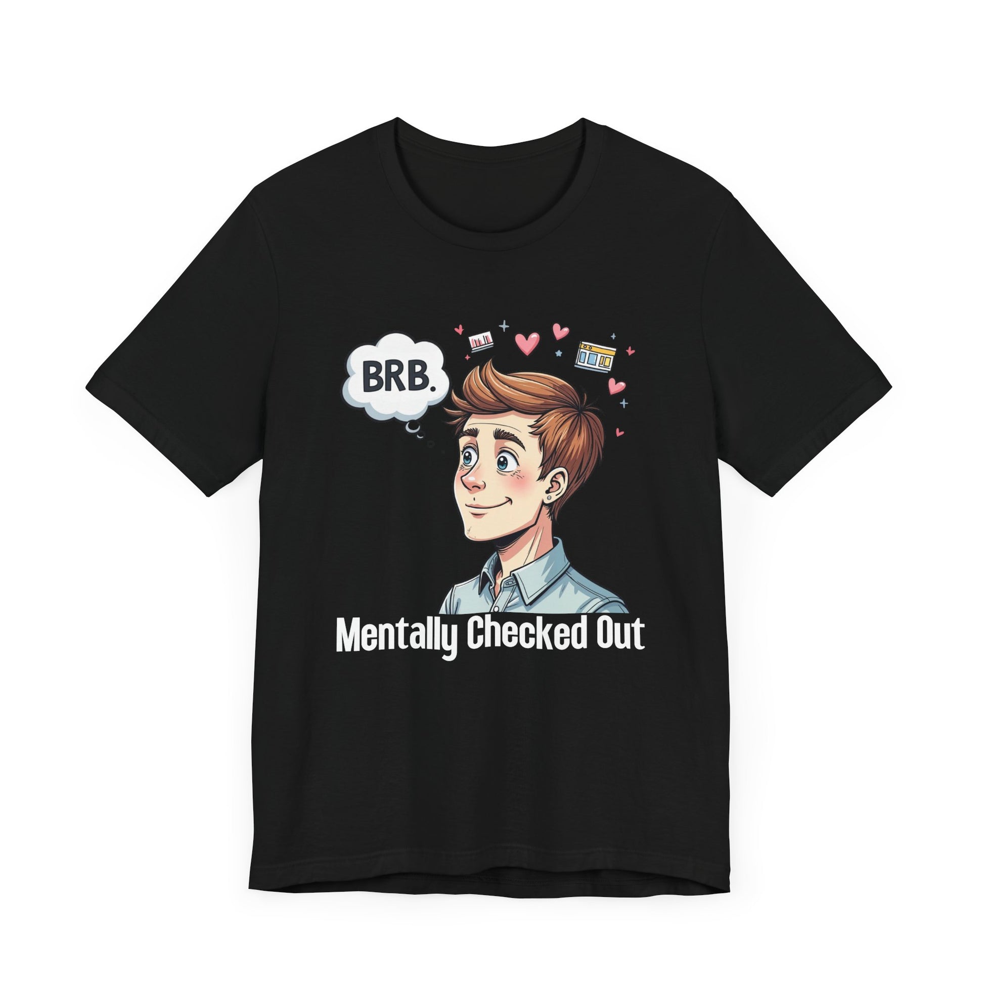 Mentally Checked Out – "BRB" Thought Bubble with Lost Man & Heart Emotions Graphic T-Shirt