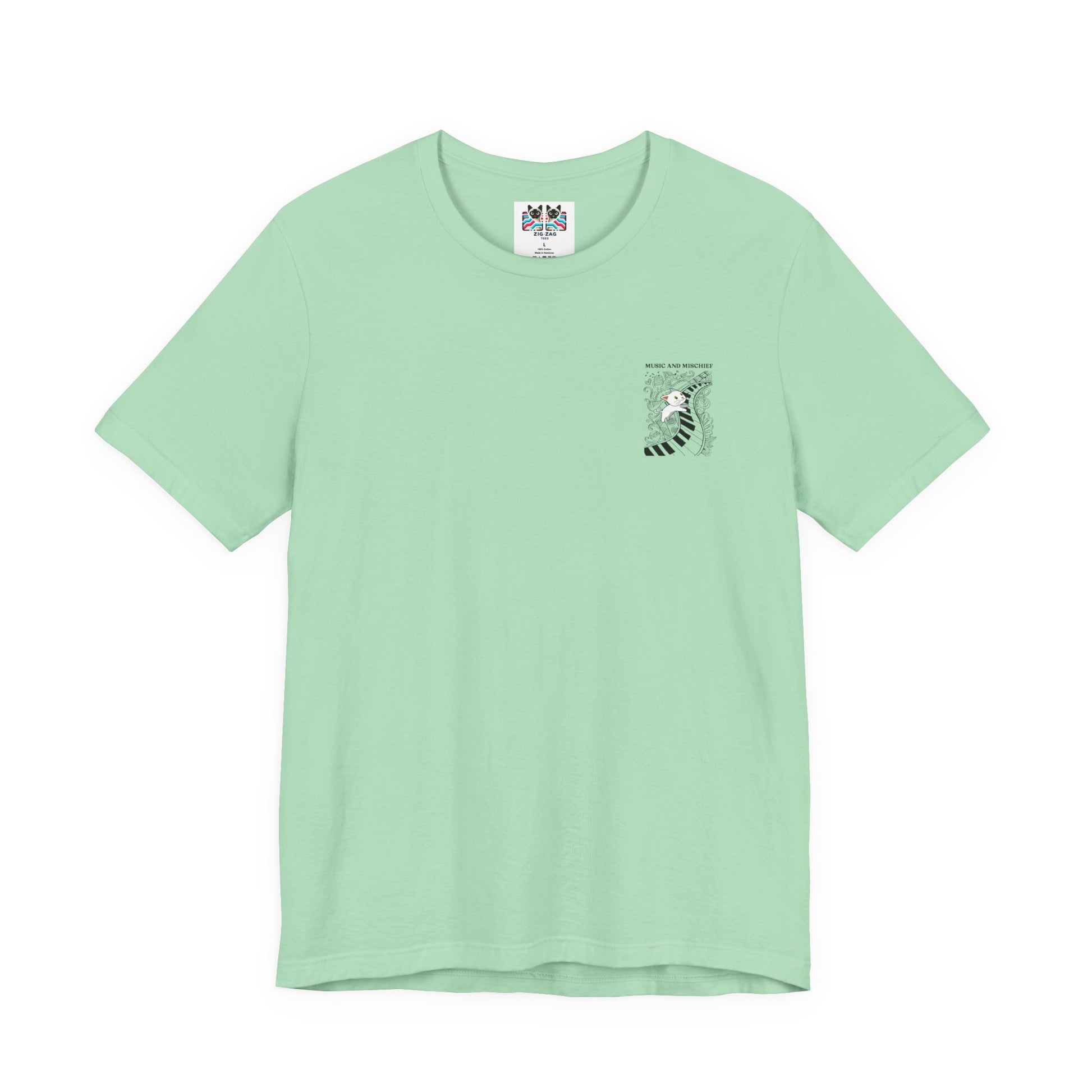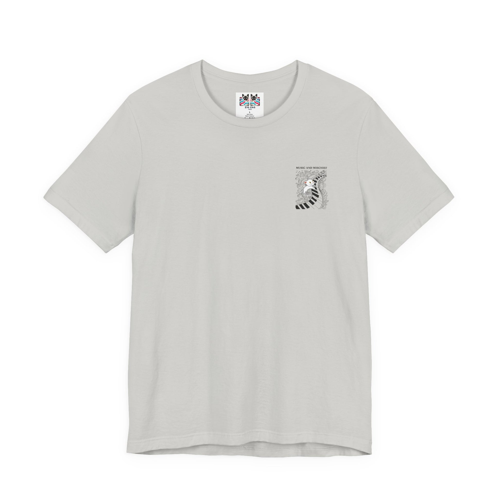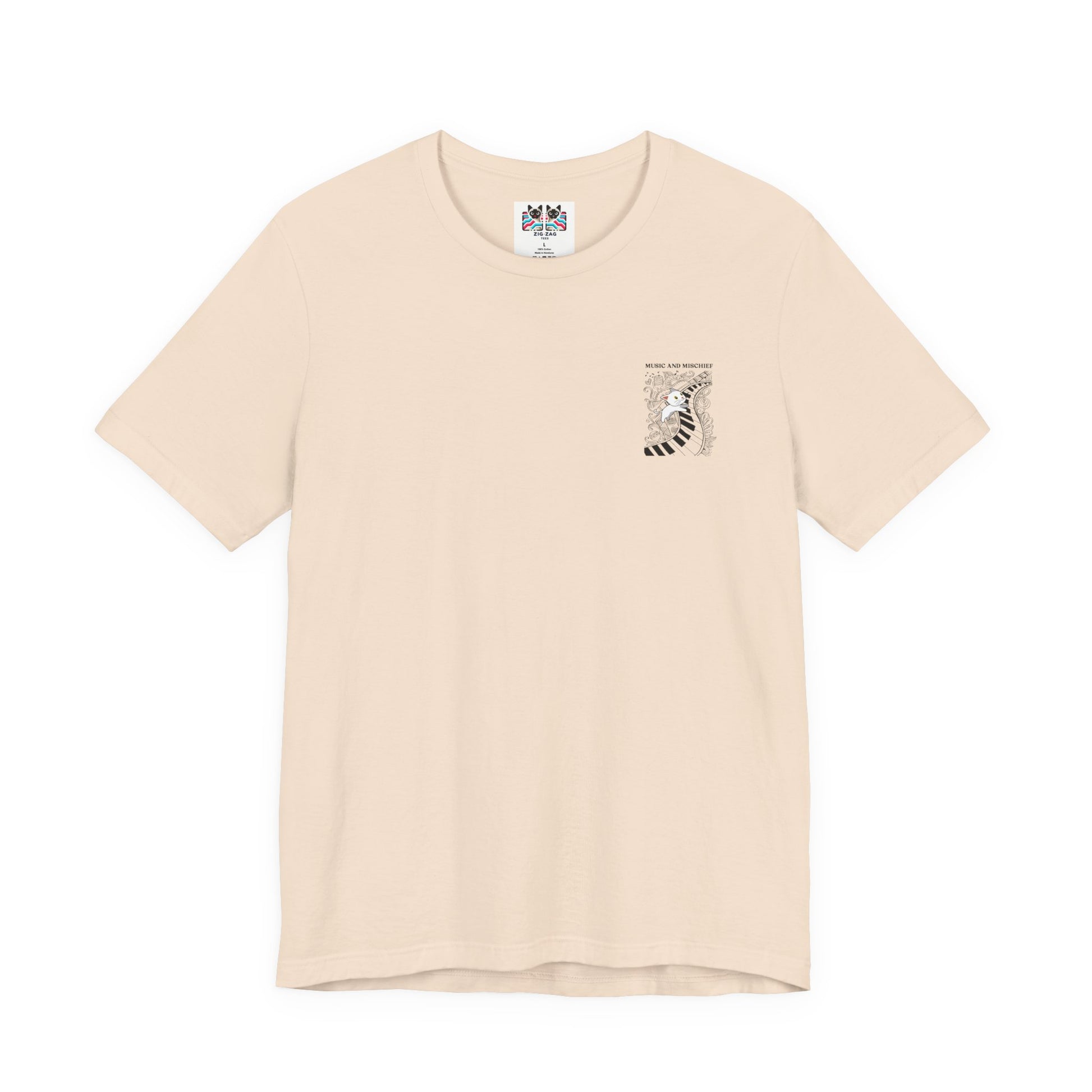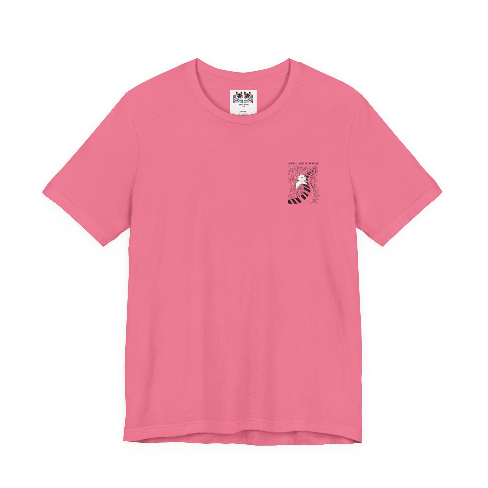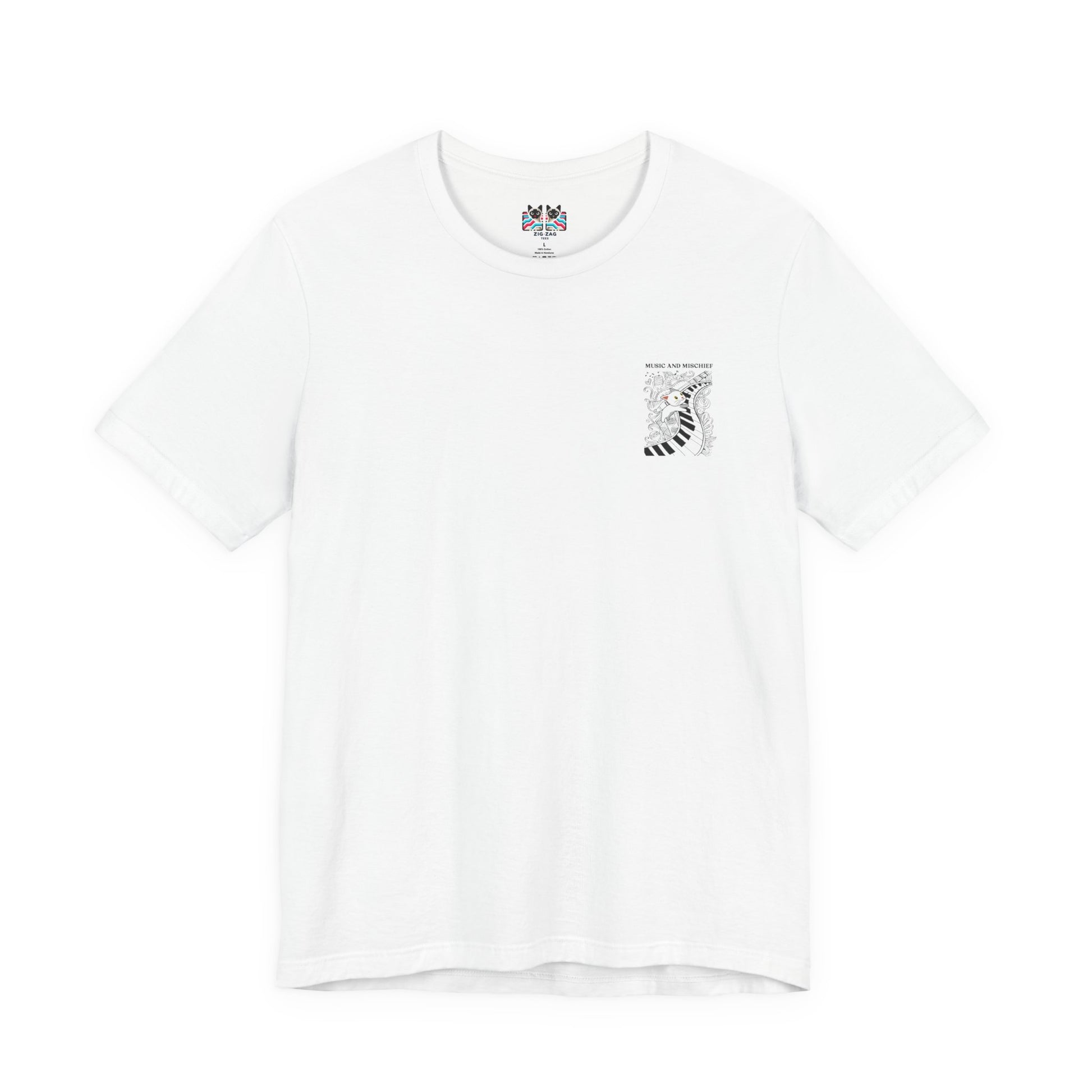 Music and Mischief T-Shirt – Piano and Playful Cat Graphic