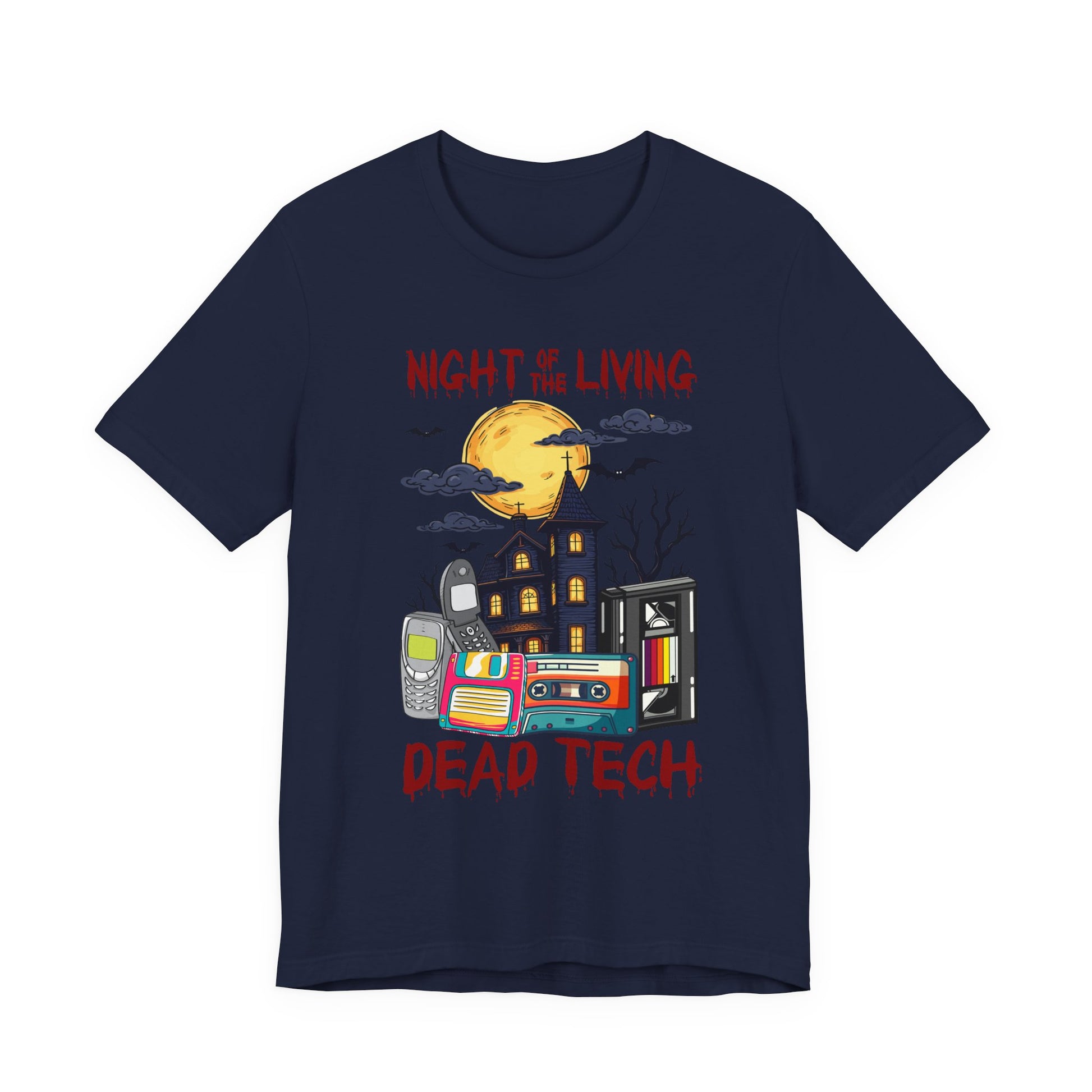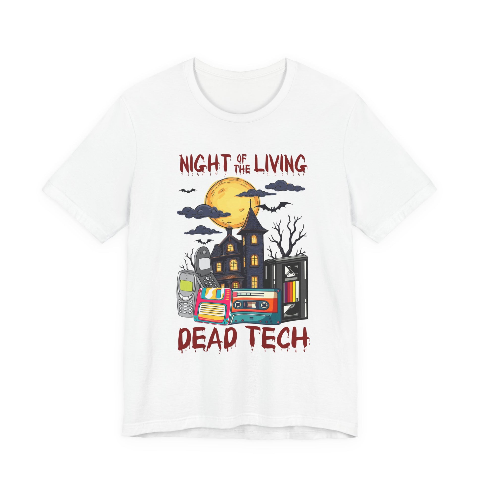 Night of the Living, Dead Tech Tshirt – Haunted Building & Retro Gadgets