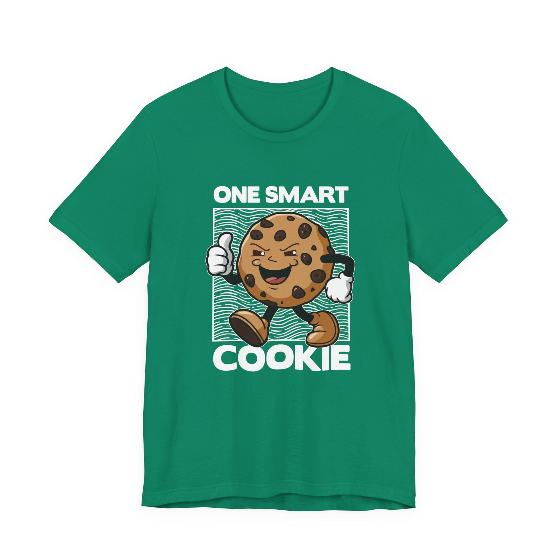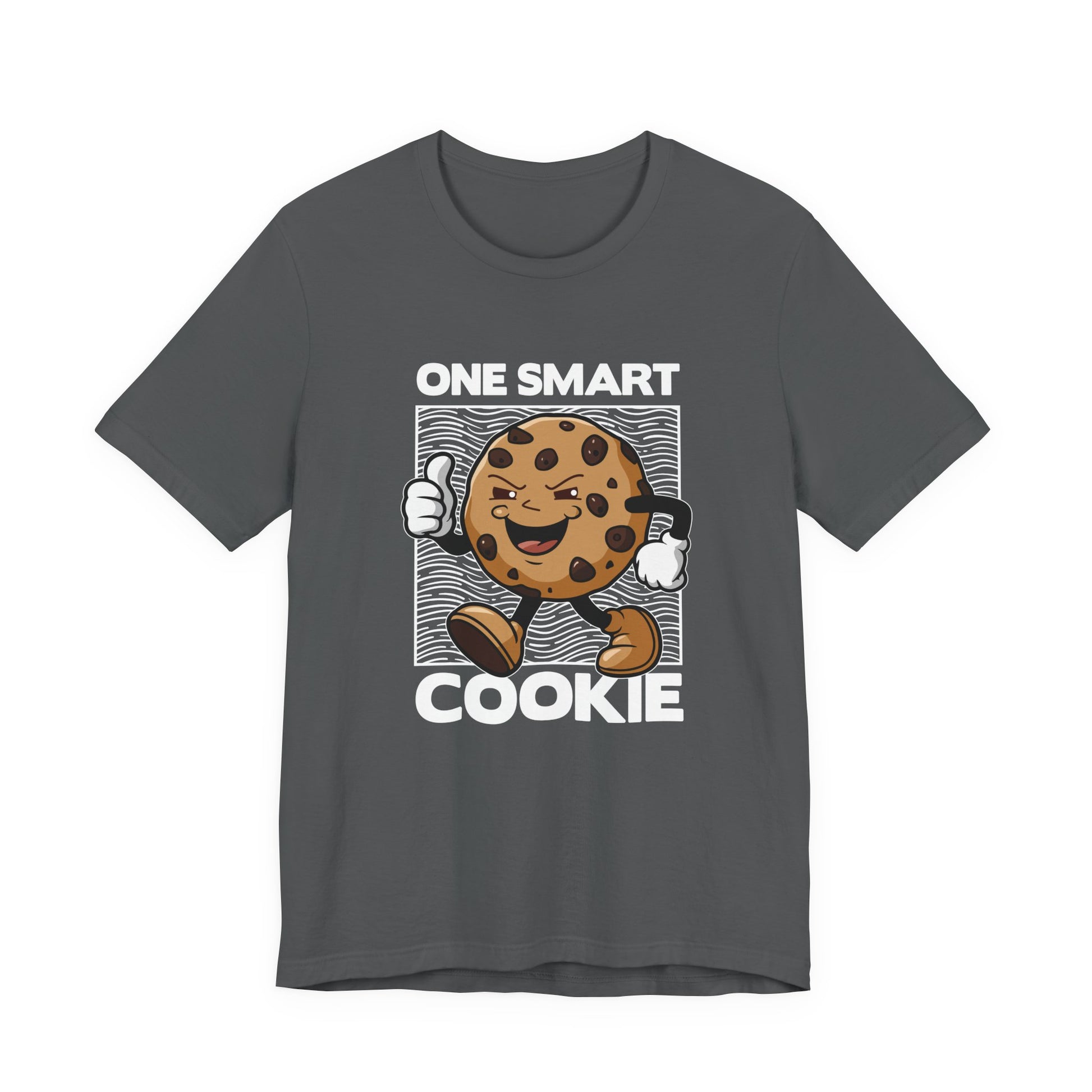 Celebrate your cleverness with this cheerful "One Smart Cookie" tshirt featuring a happy, smiling cookie character walking confidently while giving a thumbs up. This fun and lighthearted design is perfect for anyone who loves playful food-themed graphics and witty slogans. Made from soft, comfortable fabric, it’s ideal for casual wear, gifts for friends or family, or as a cute addition to your everyday wardrobe. Show off your smart side with a smile!