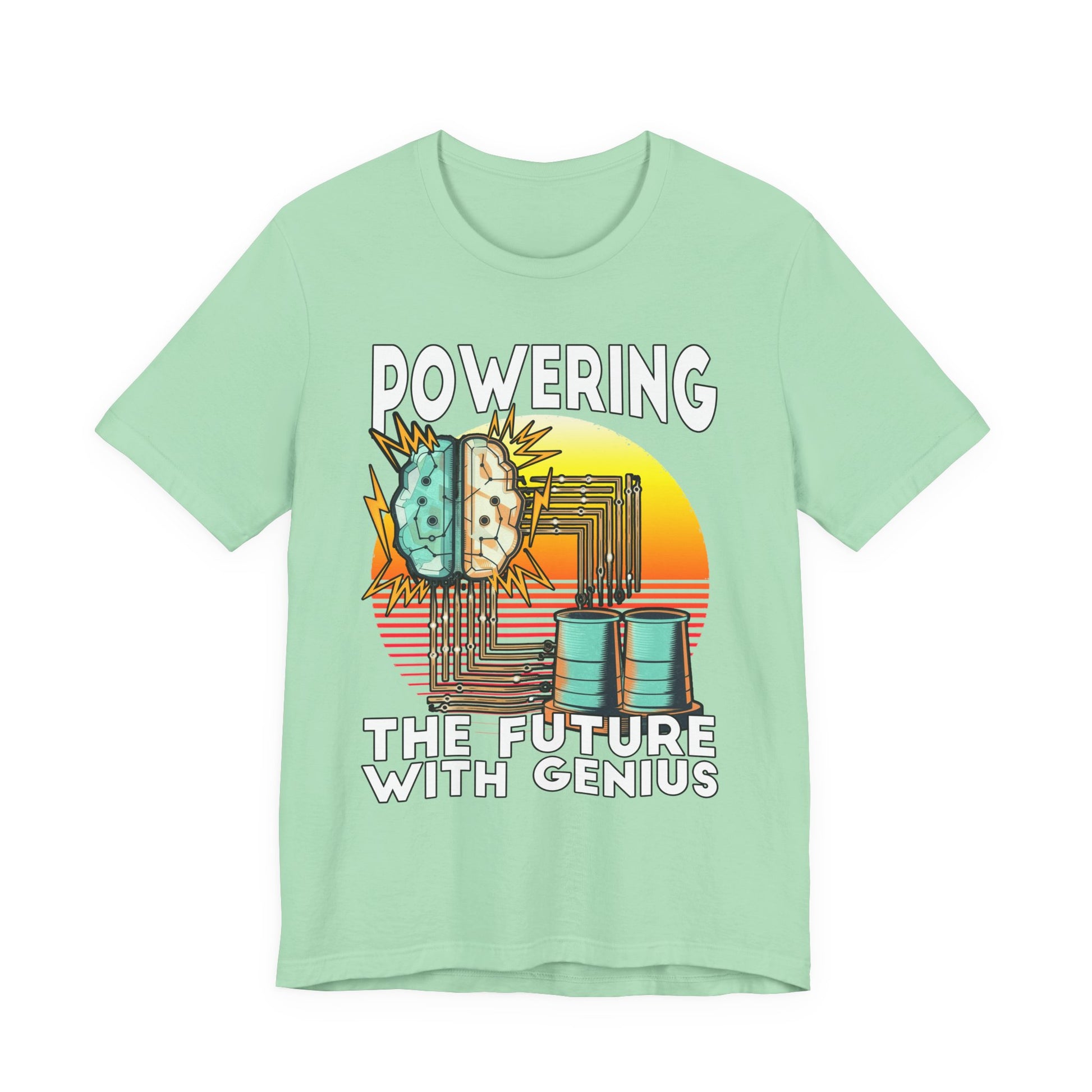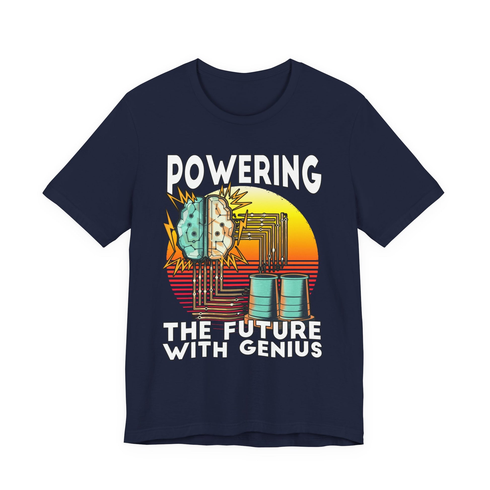 Powering the Future with Genius Tshirt – AI Brain and Tesla Turbines Graphic