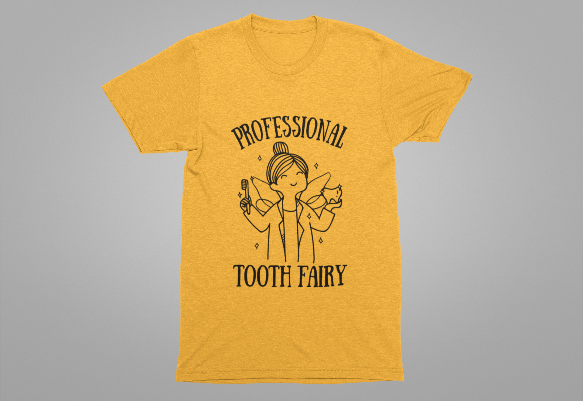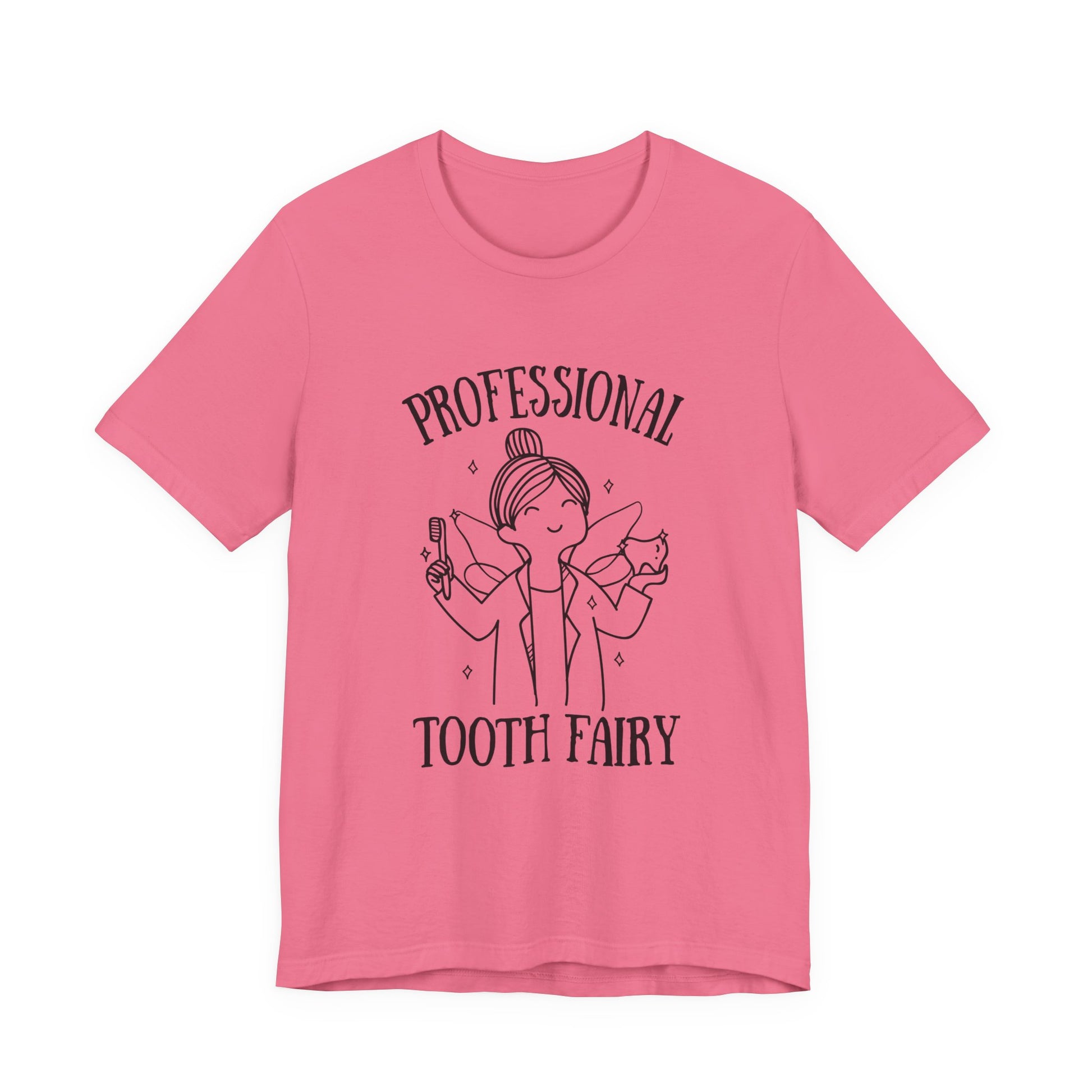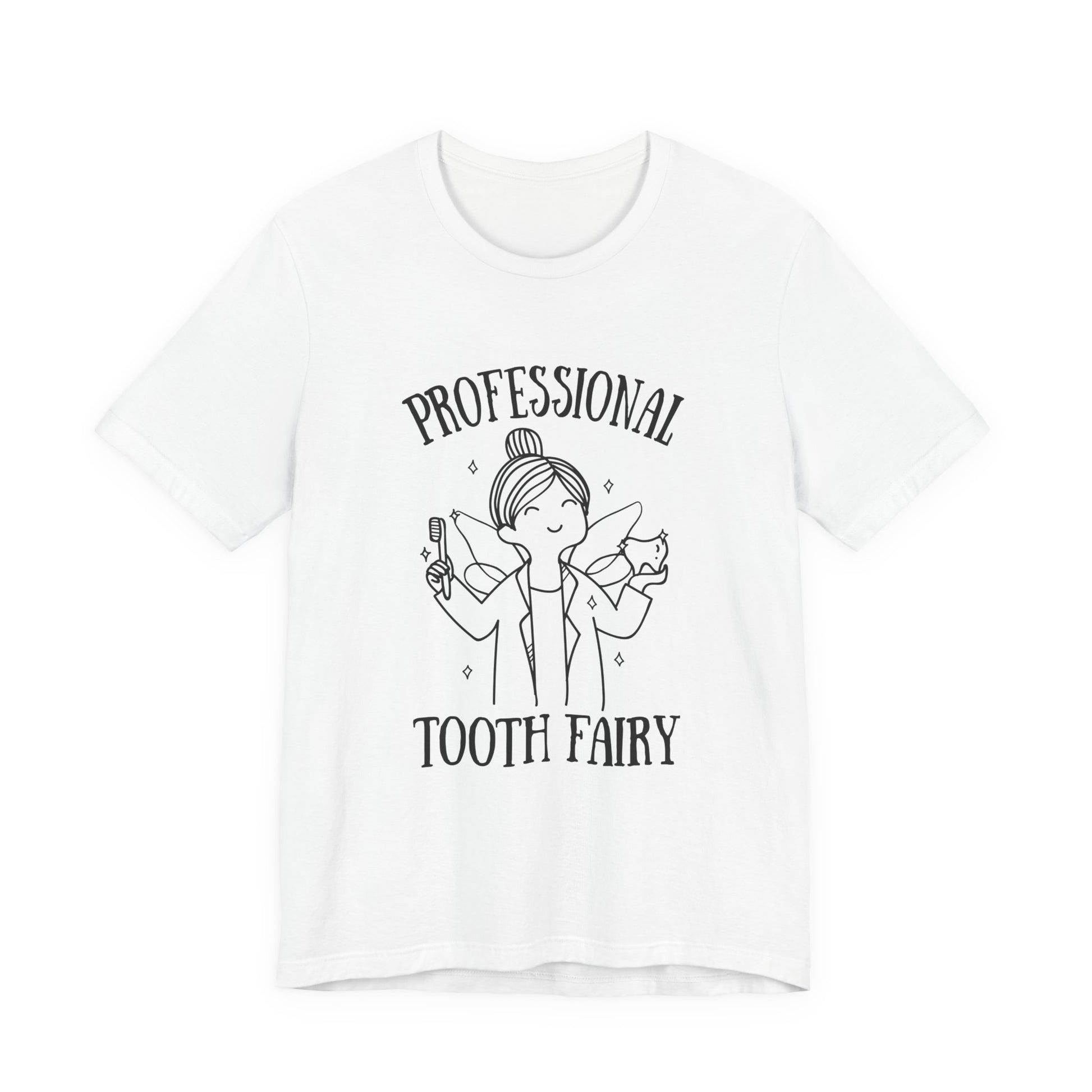 Celebrate your dental profession with a whimsical twist in this Professional Tooth Fairy t shirt. Featuring a graphic of a female dental doctor as a fairy, this design blends professional pride with playful charm. Perfect for dentists, dental hygienists, assistants, or students, this tee is a fun way to show your love for oral care and bring smiles to patients and colleagues alike. Comfortable and eye catching, it makes a thoughtful gift for anyone in the dental field or those who believe in a little everyday magic.