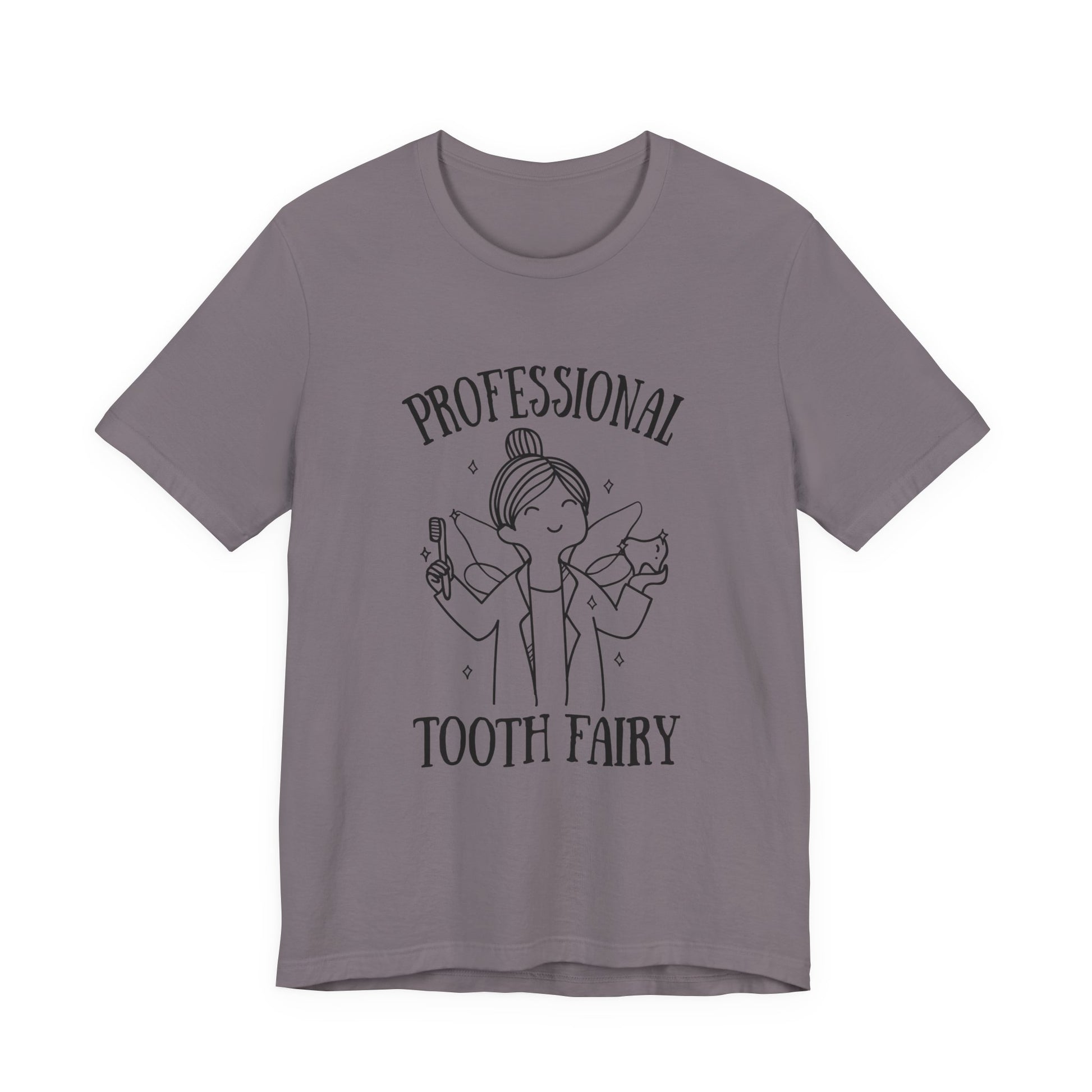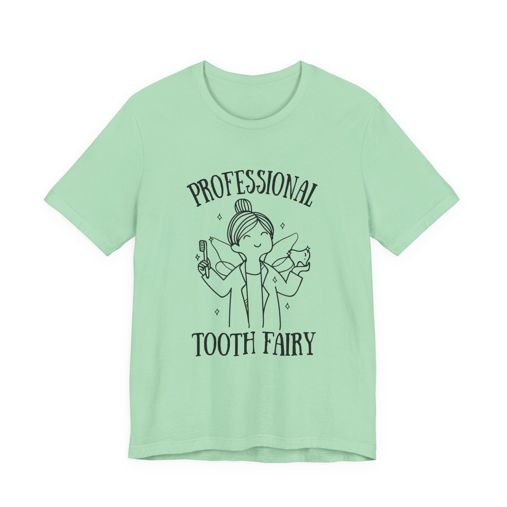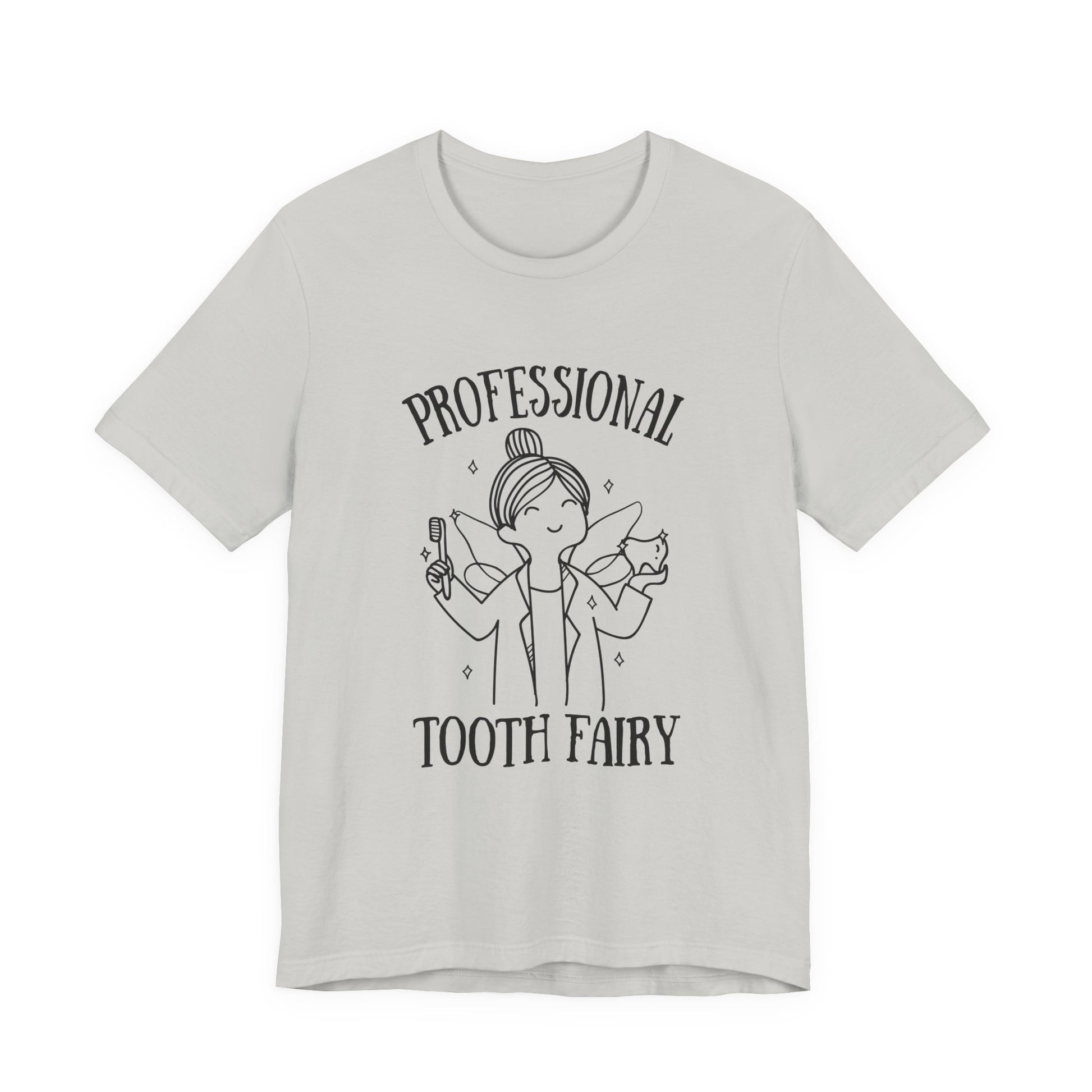Celebrate your dental profession with a whimsical twist in this Professional Tooth Fairy t shirt. Featuring a graphic of a female dental doctor as a fairy, this design blends professional pride with playful charm. Perfect for dentists, dental hygienists, assistants, or students, this tee is a fun way to show your love for oral care and bring smiles to patients and colleagues alike. Comfortable and eye catching, it makes a thoughtful gift for anyone in the dental field or those who believe in a little everyday magic.