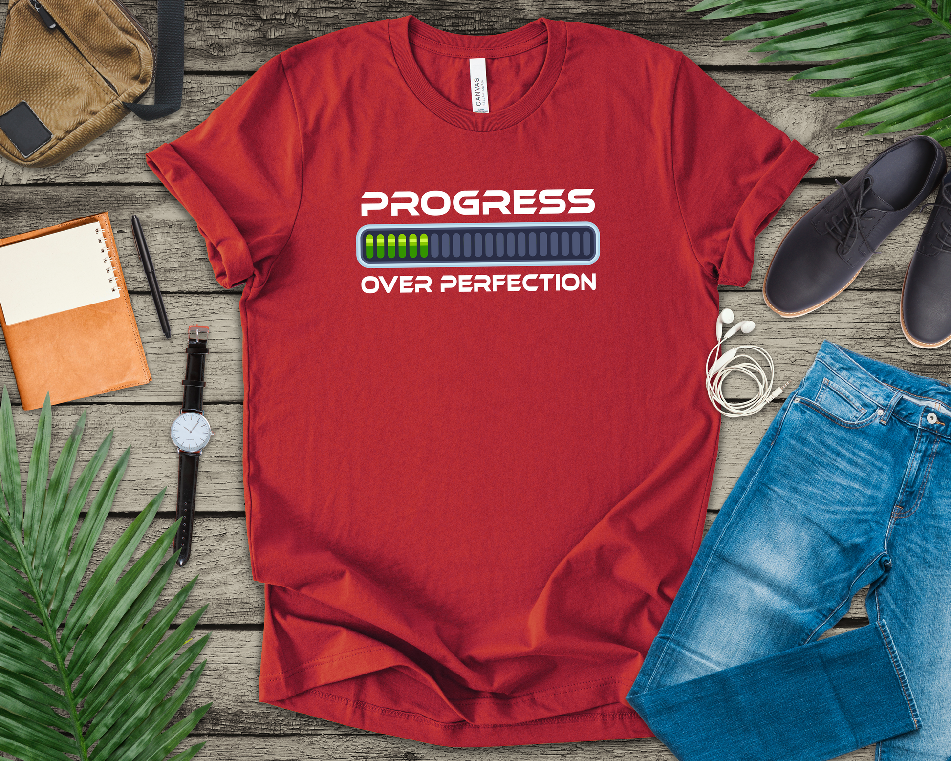 Progress Over Perfection Tee, Motivational Fitness Shirt, Personal Growth Workout Top, Gym Journey Graphic Tee, Daily Grind Gift