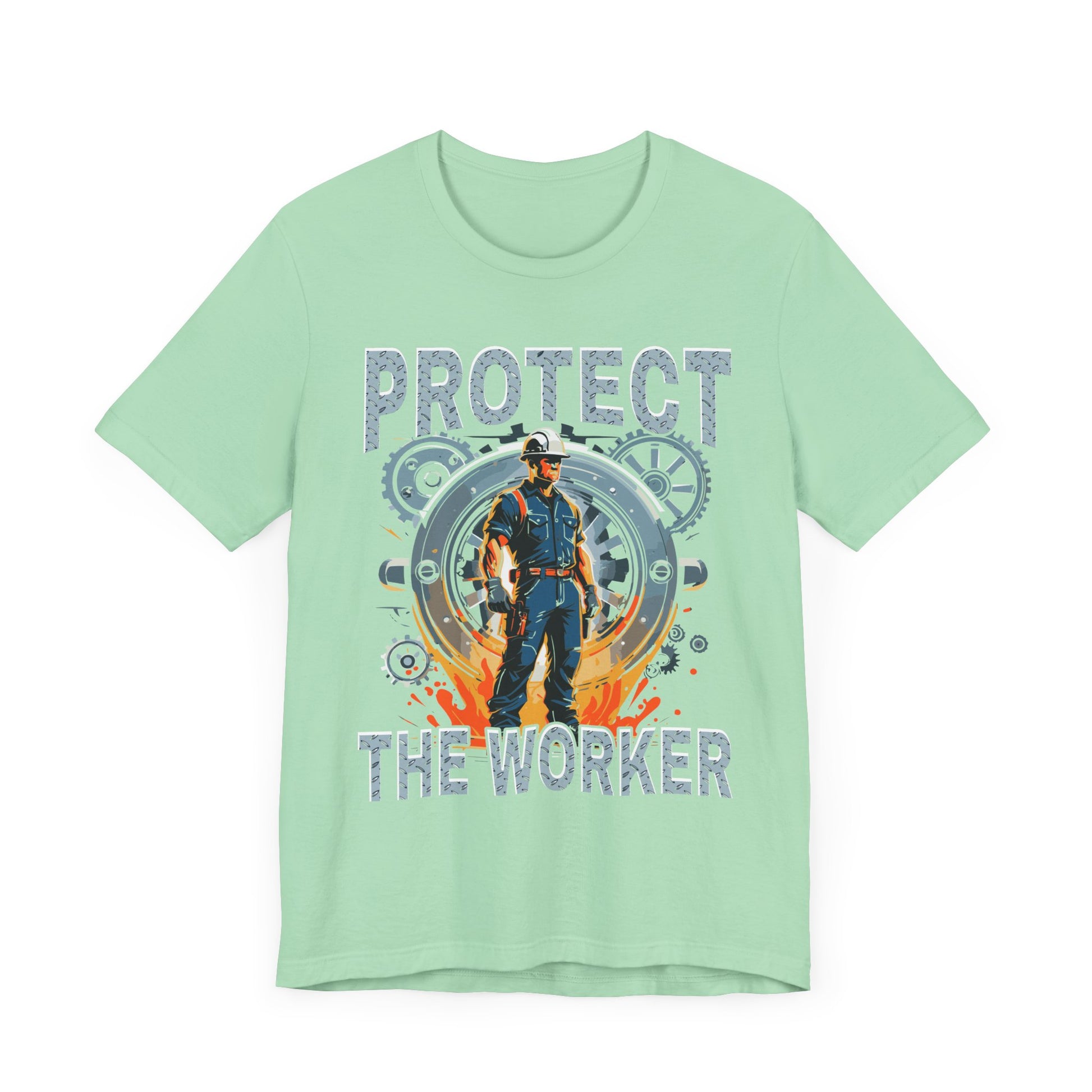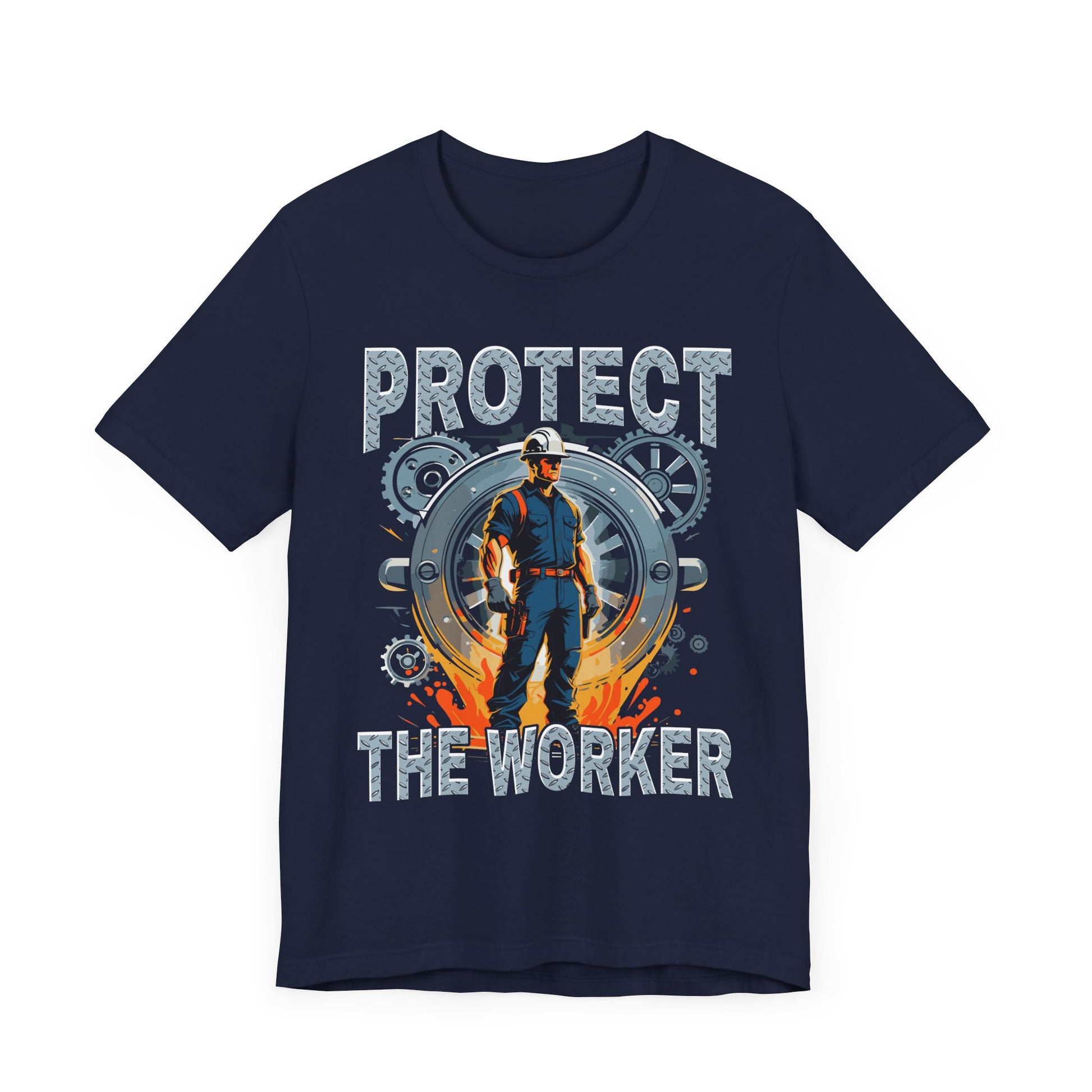 Safety is not a privilege—it’s a right. The "Protect The Worker" t-shirt is a bold and striking design dedicated to those working in demanding industries who deserve protection, fair conditions, and respect. Featuring a strong industrial worker in front of mechanical gears, this tee reminds everyone of the sacrifices made by laborers every day. A must-have for those in construction, manufacturing, or labor advocacy.