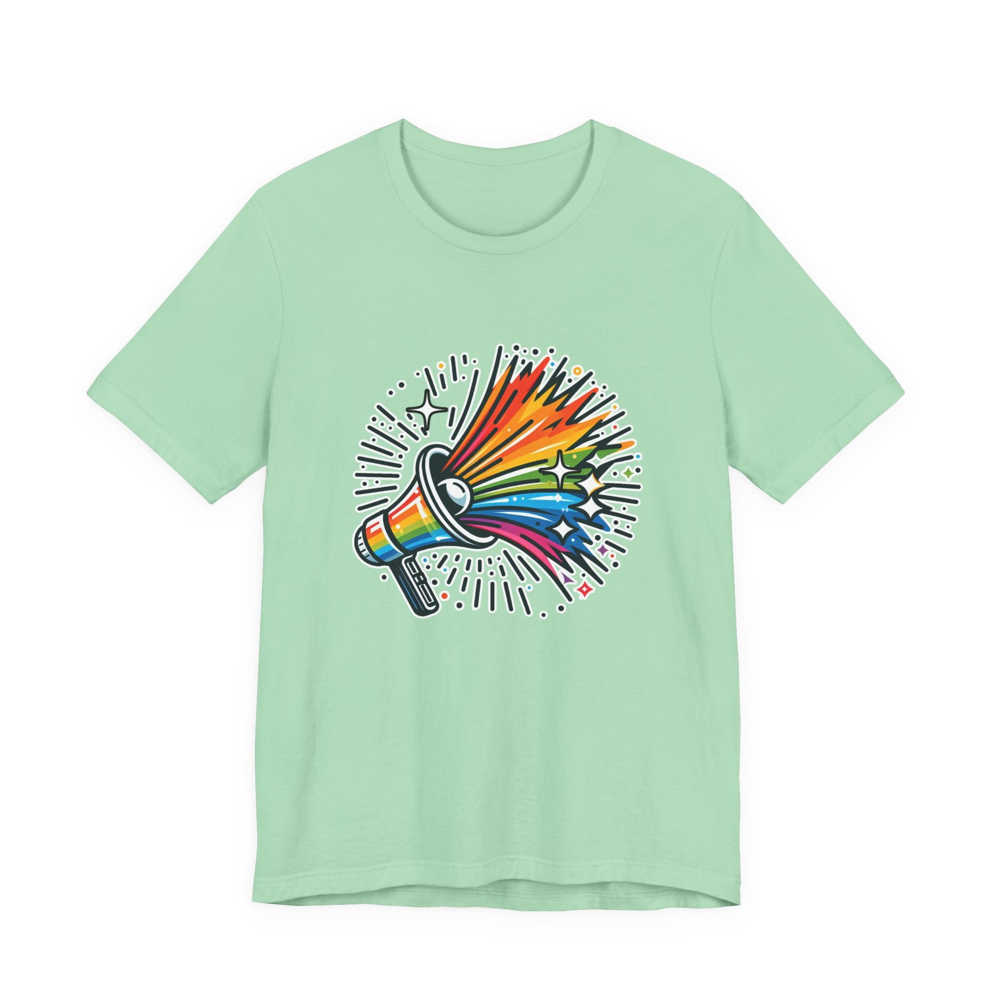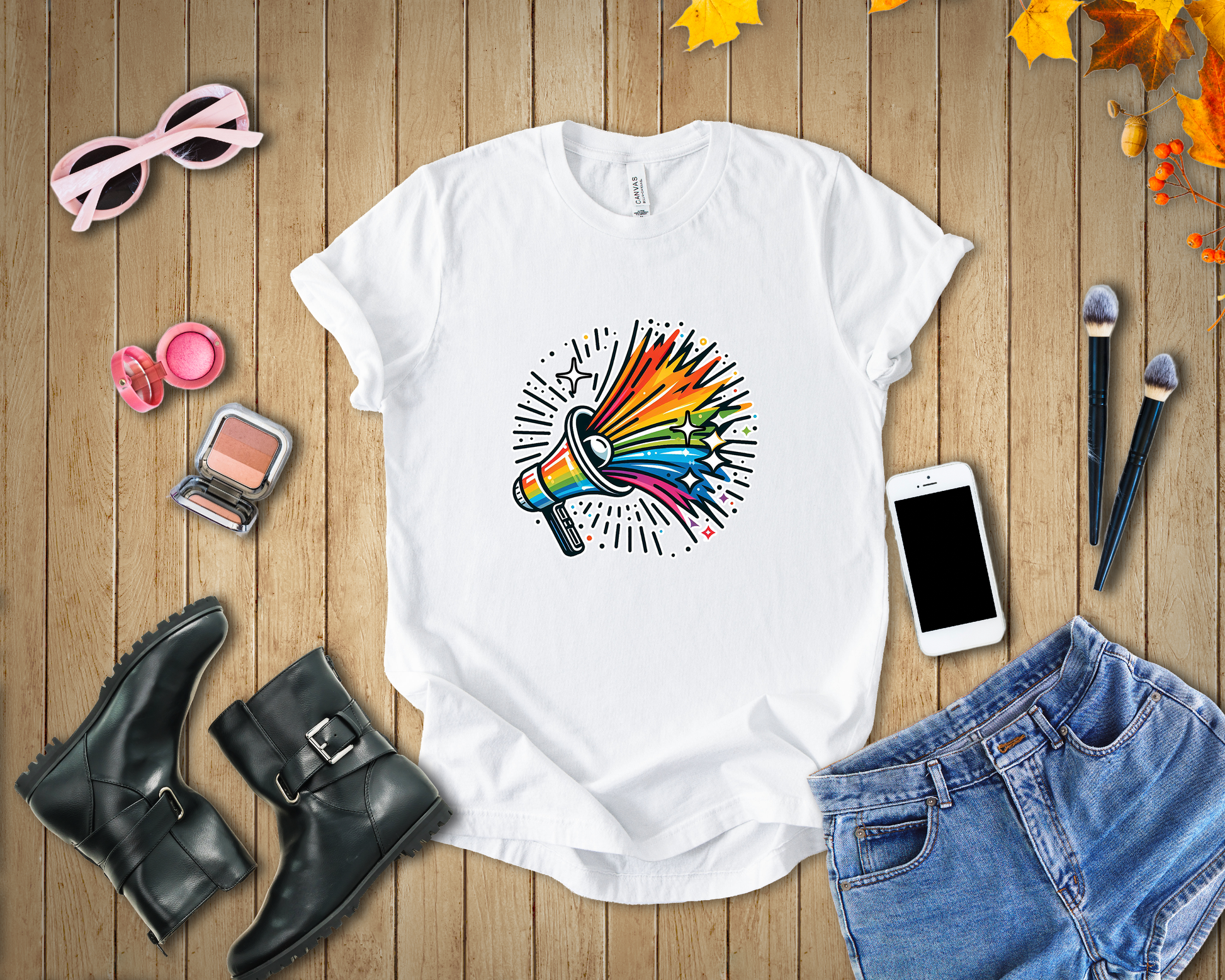 Make your voice heard with this vibrant "Proud & Loud" t-shirt featuring a large, colorful handheld speaker bursting with dynamic lines and sparkling stars. This energetic design symbolizes bold expression, confidence, and the power to stand out and be heard. Perfect for anyone who embraces their uniqueness and isn’t afraid to share their message with the world. Crafted from soft, comfortable fabric, this tee is ideal for rallies, concerts, or everyday wear where you want to celebrate being unapologetically loud and proud.
