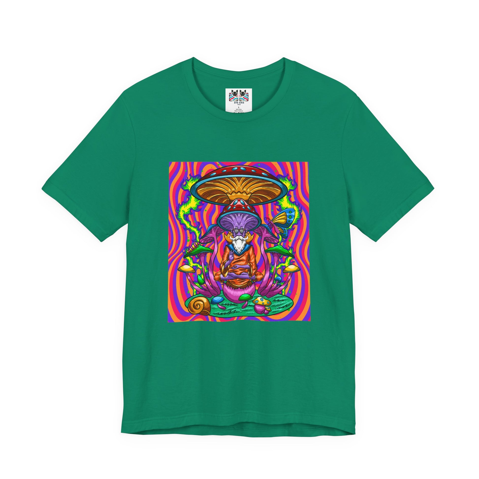 Trip into a colorful fantasy world with this psychedelic mushroom t-shirt featuring a trippy mushroom wizard illustration on the front in vibrant neon colors. The back showcases a glowing moonlit forest of animated mushrooms swirling with colorful smoke and the bold phrase “Stay Wild & High” in retro script. Perfect for festival goers, rave and EDM fans, psychedelic art lovers, and anyone with a wild side, this bold graphic tee is ideal for concerts, parties, and laid-back streetwear.