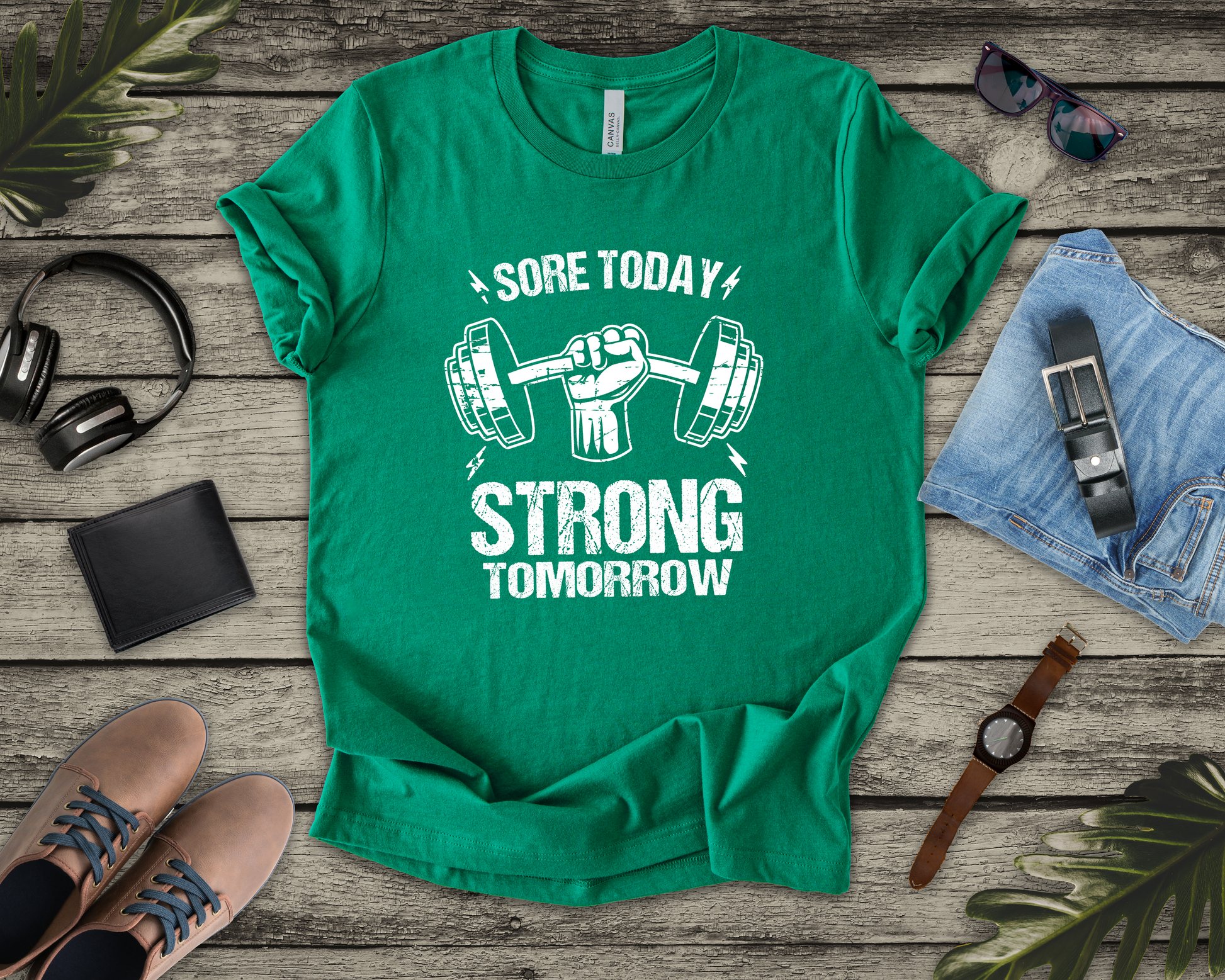Sore Today Strong Tomorrow Tee, Gym Motivation Shirt, Workout Grind Top, Fitness Progress Graphic, Strength Gift