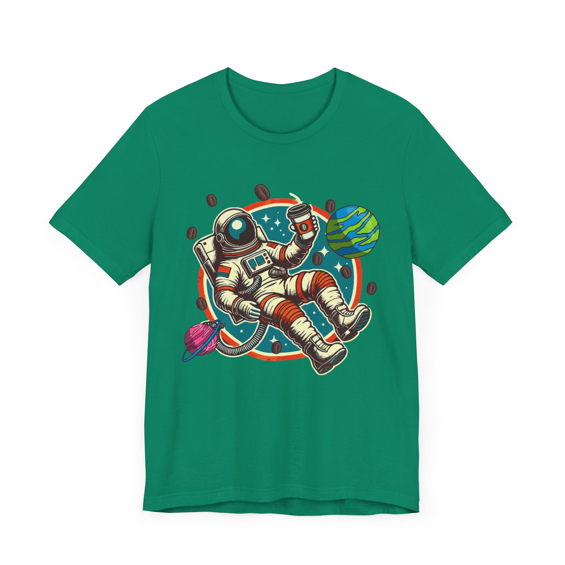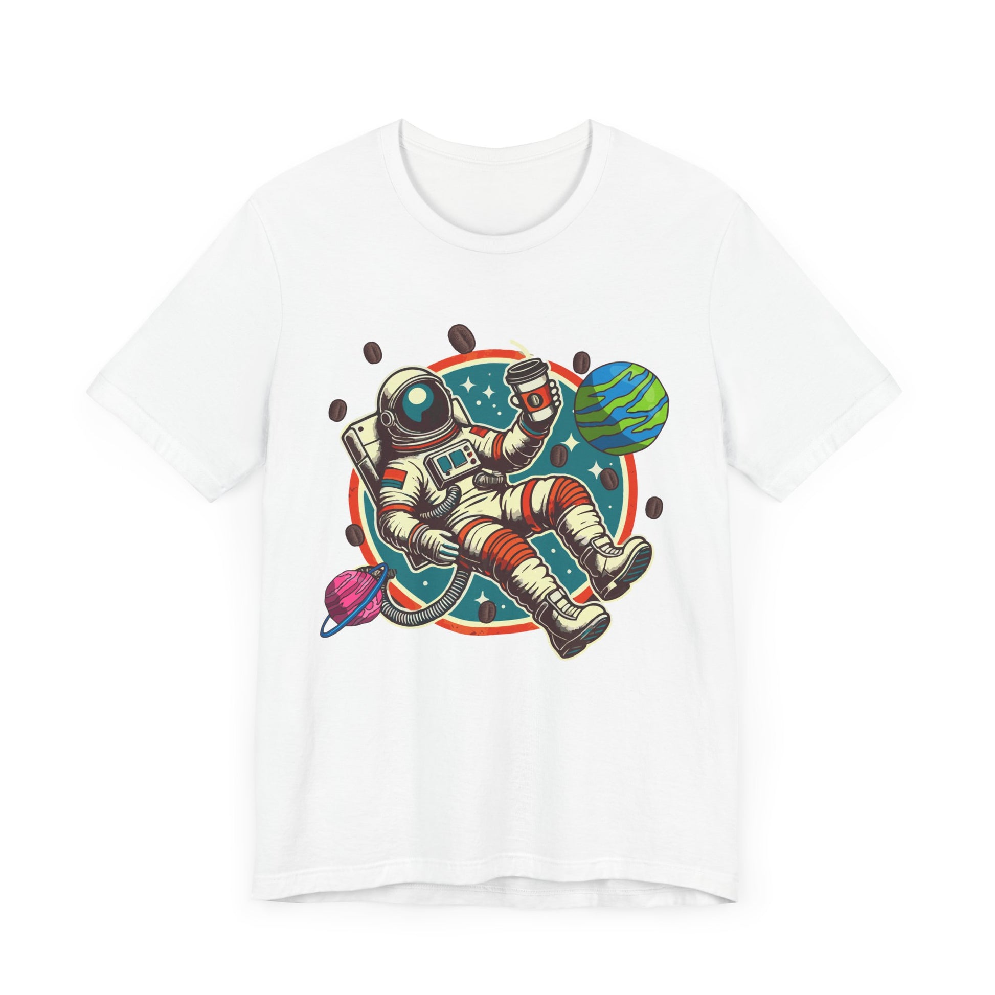 Space Coffee Break | Astronaut Floating with Coffee Cup & Planets Graphic T-Shirt