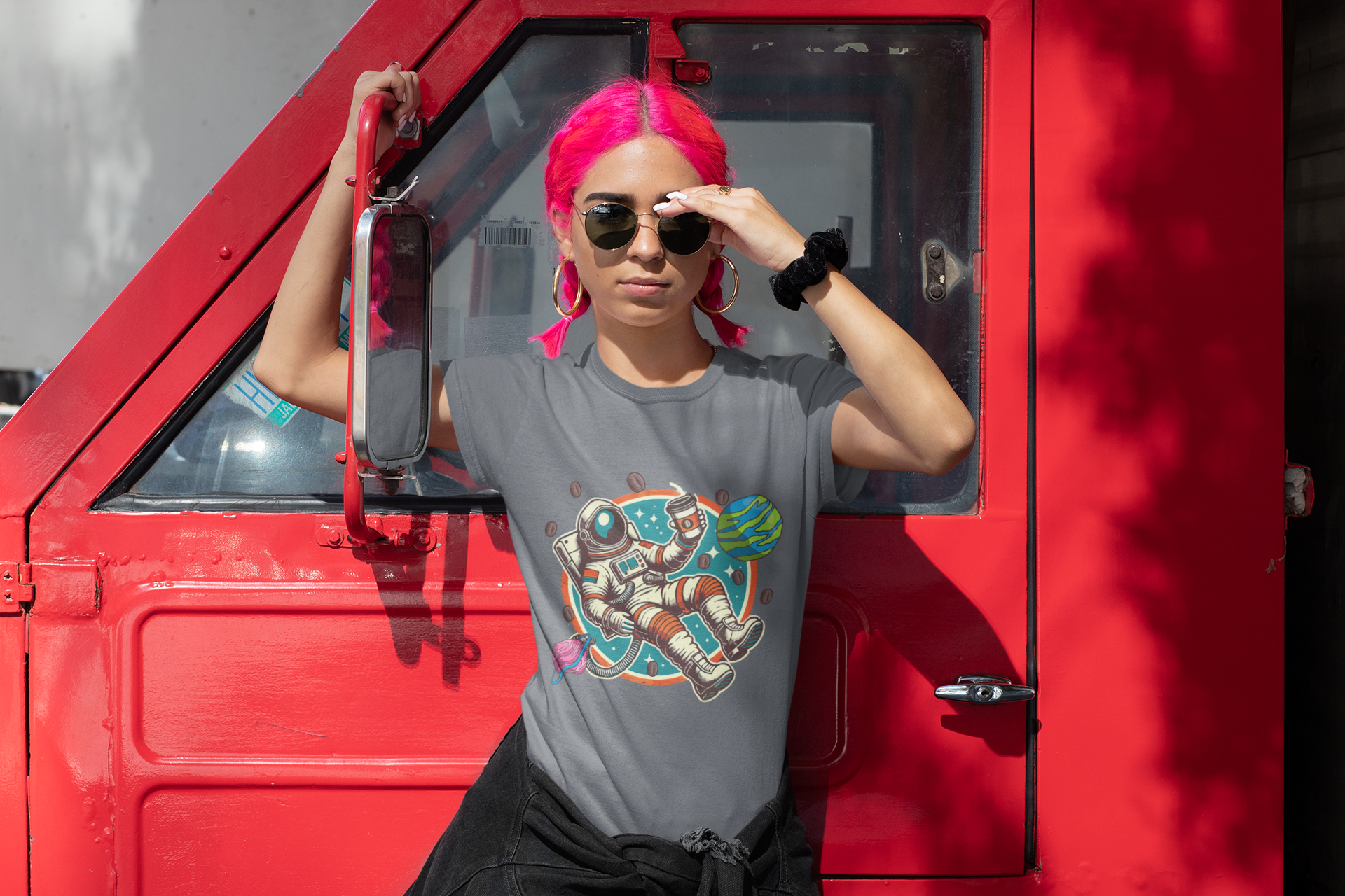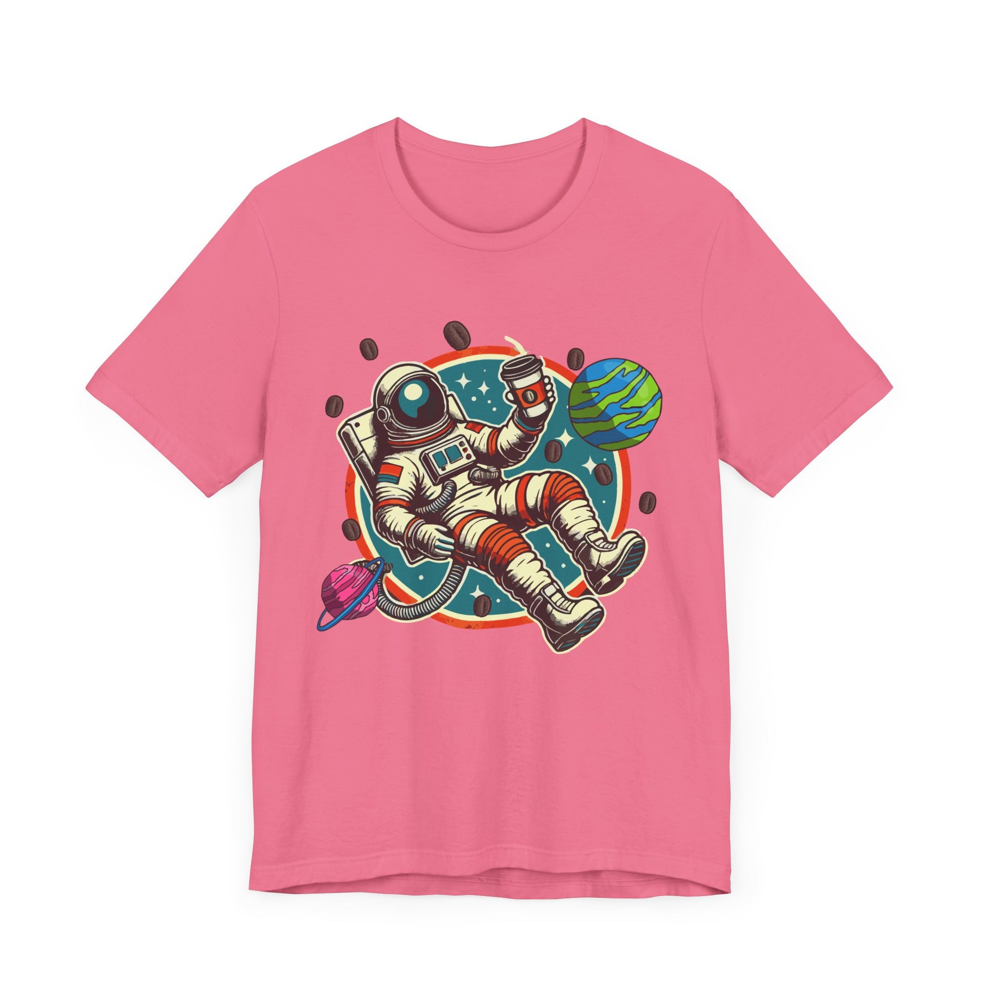 Take your love for coffee and space to the next level with this whimsical "Space Coffee Break" t-shirt! The design features an astronaut floating in the vastness of space, coffee cup in hand, with coffee beans playfully spilled and drifting all around. The astronaut’s oxygen pipe is uniquely connected to a vibrant pink planet with a ring, while a blue and green planet floats in front of him on the right, adding a splash of cosmic color and adventure. This imaginative tee is perfect for coffee lovers, space enthusiasts, or anyone who enjoys quirky, out-of-this-world designs. Made from soft, comfortable fabric, it’s ideal for casual wear or as a fun gift for dreamers and explorers.