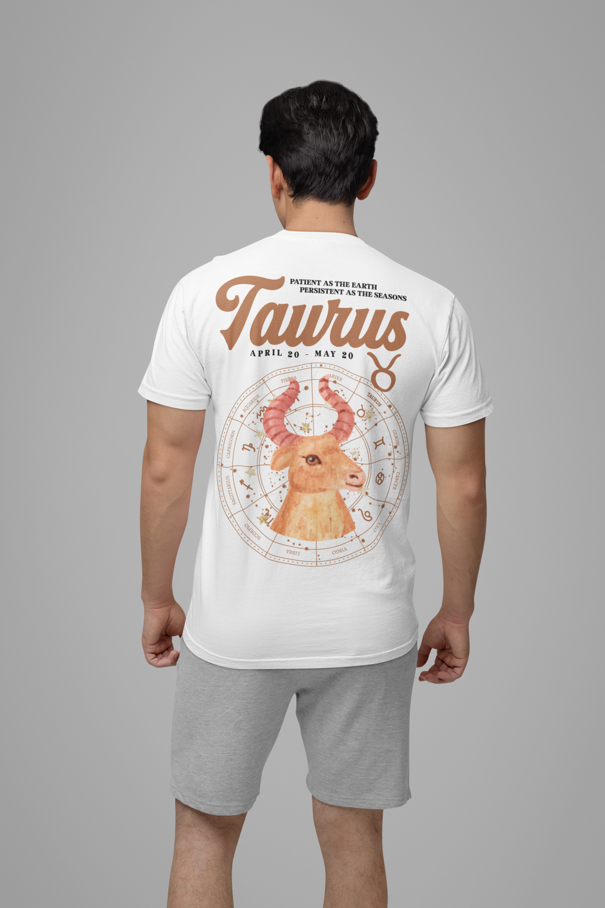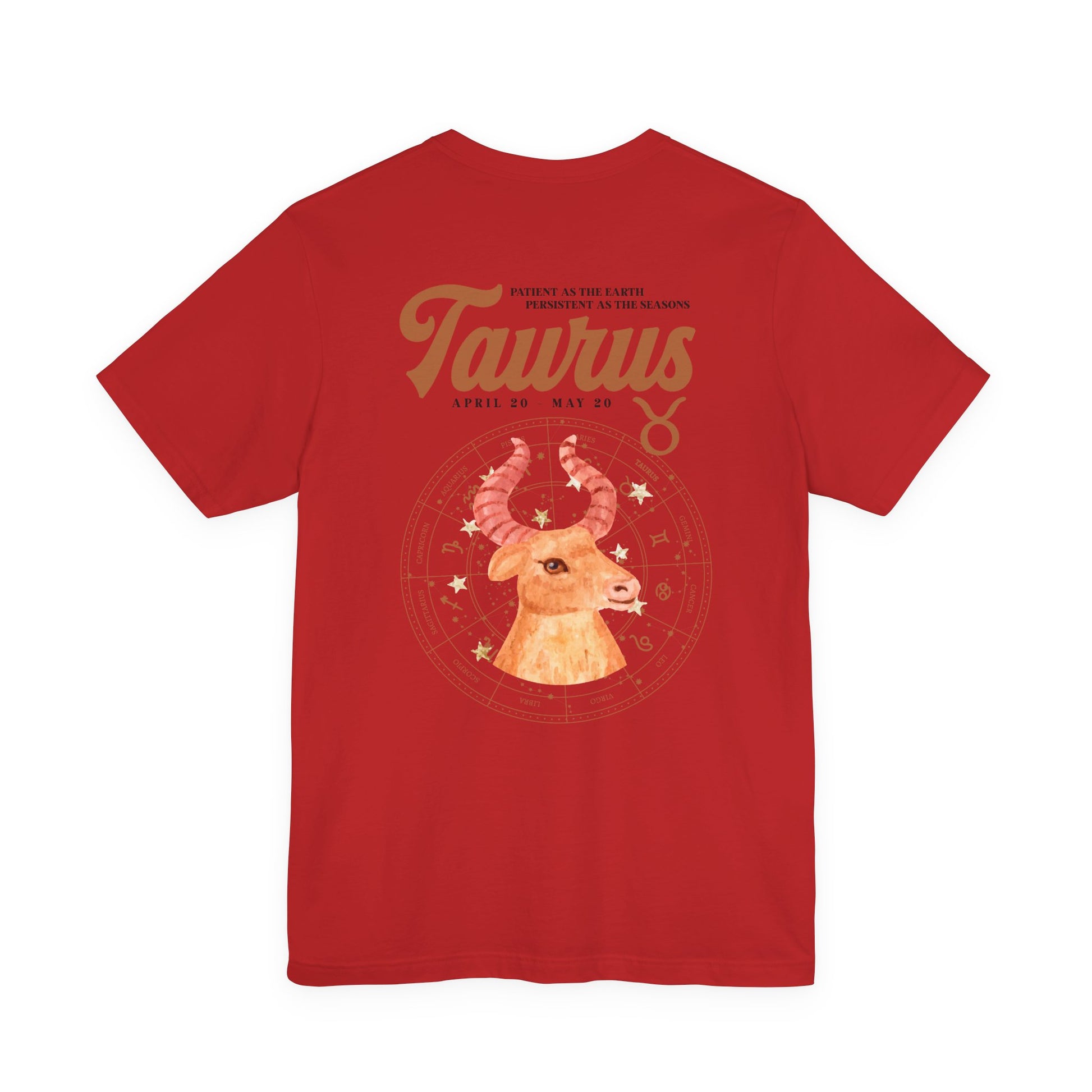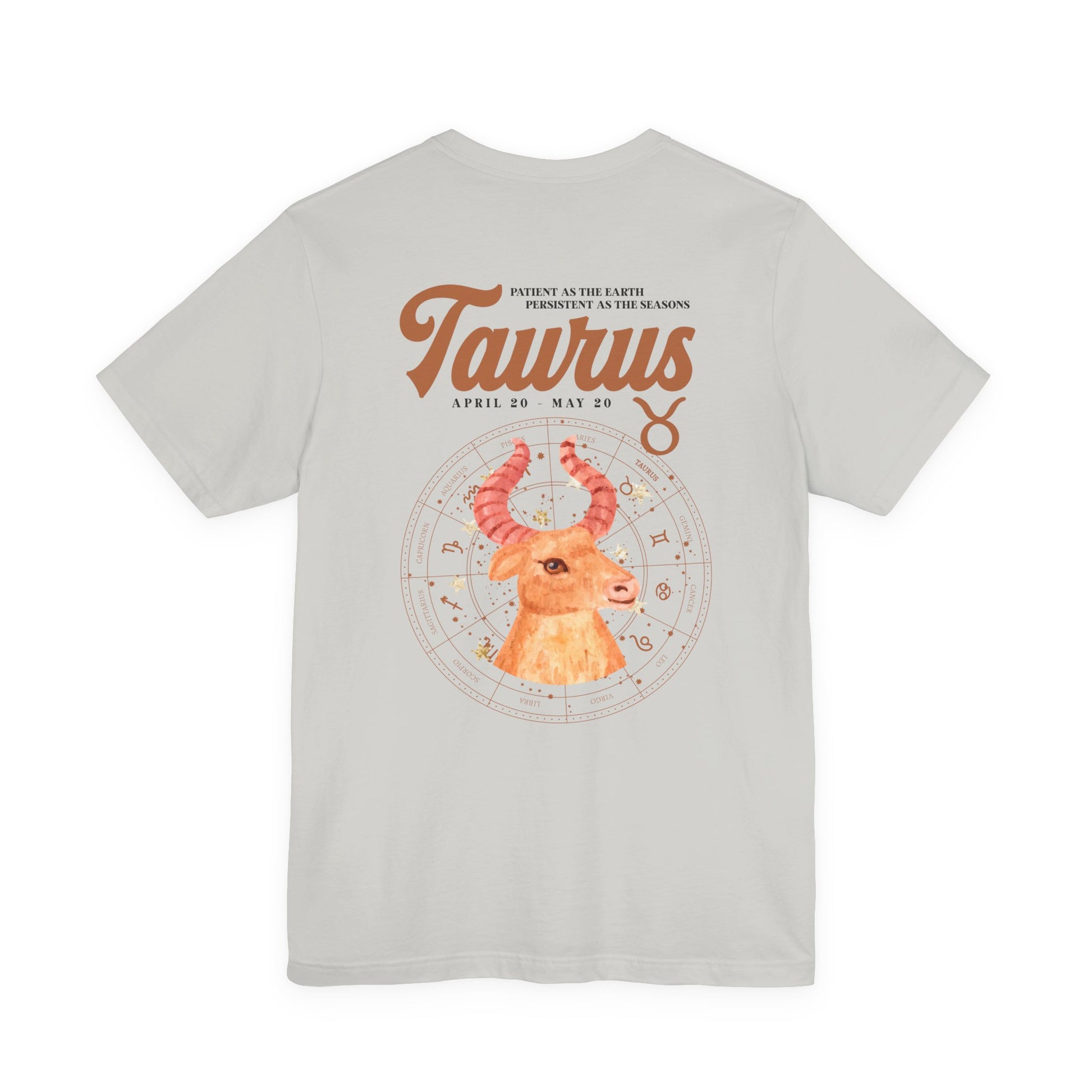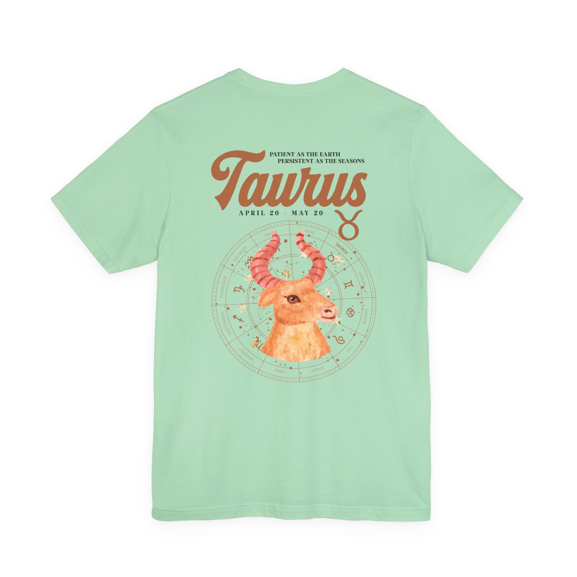 Taurus Zodiac T-Shirt – Patient as the Earth Persistent as the Seasons with astrological wheel