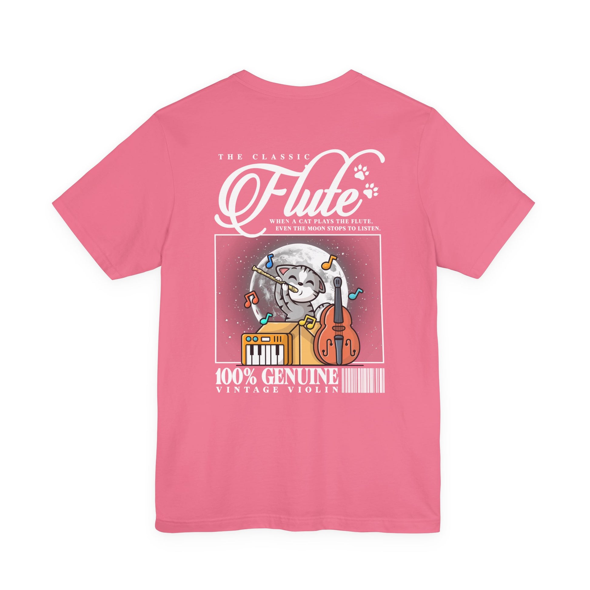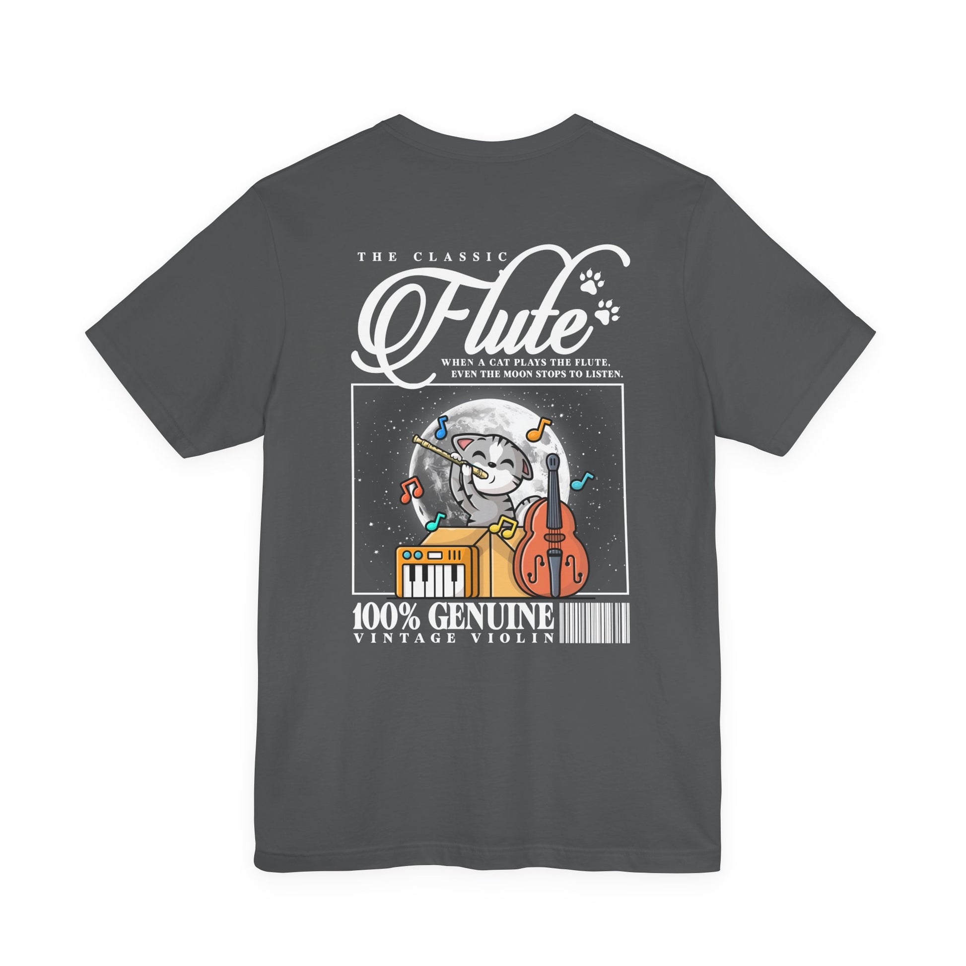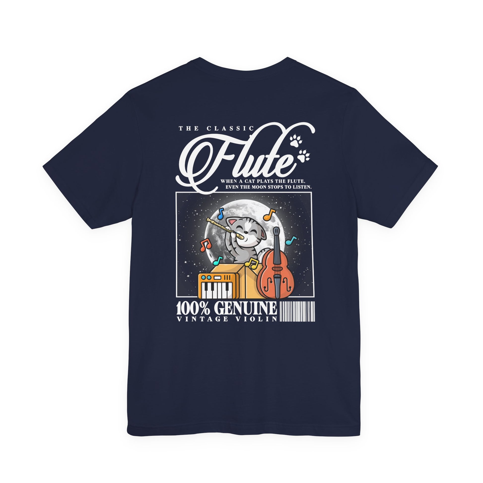Bring some magical music to your wardrobe with this “The Classic FLUTE” t-shirt featuring a cute cat playing the flute under a large moon, surrounded by music notes and other instruments. The dreamy moonlit background and whimsical artwork make this tee perfect for flute players, cat lovers, band kids, orchestra members, and music teachers. Ideal for rehearsals, concerts, school events, or everyday wear, it also makes a unique gift for anyone who loves cats, classical music, and night-sky vibes.
