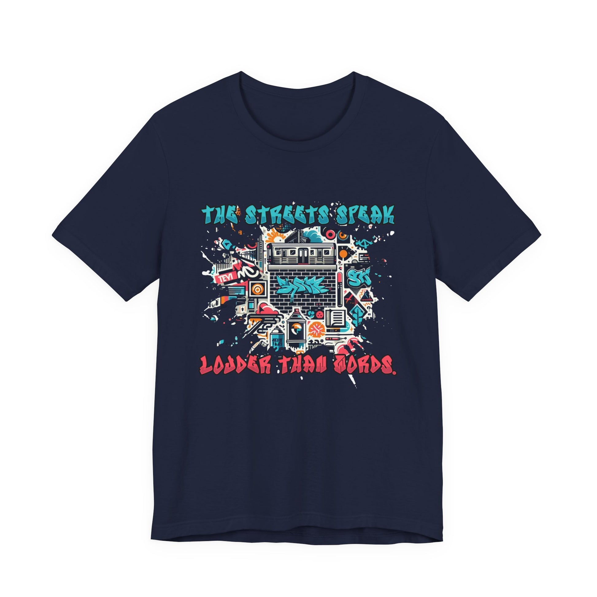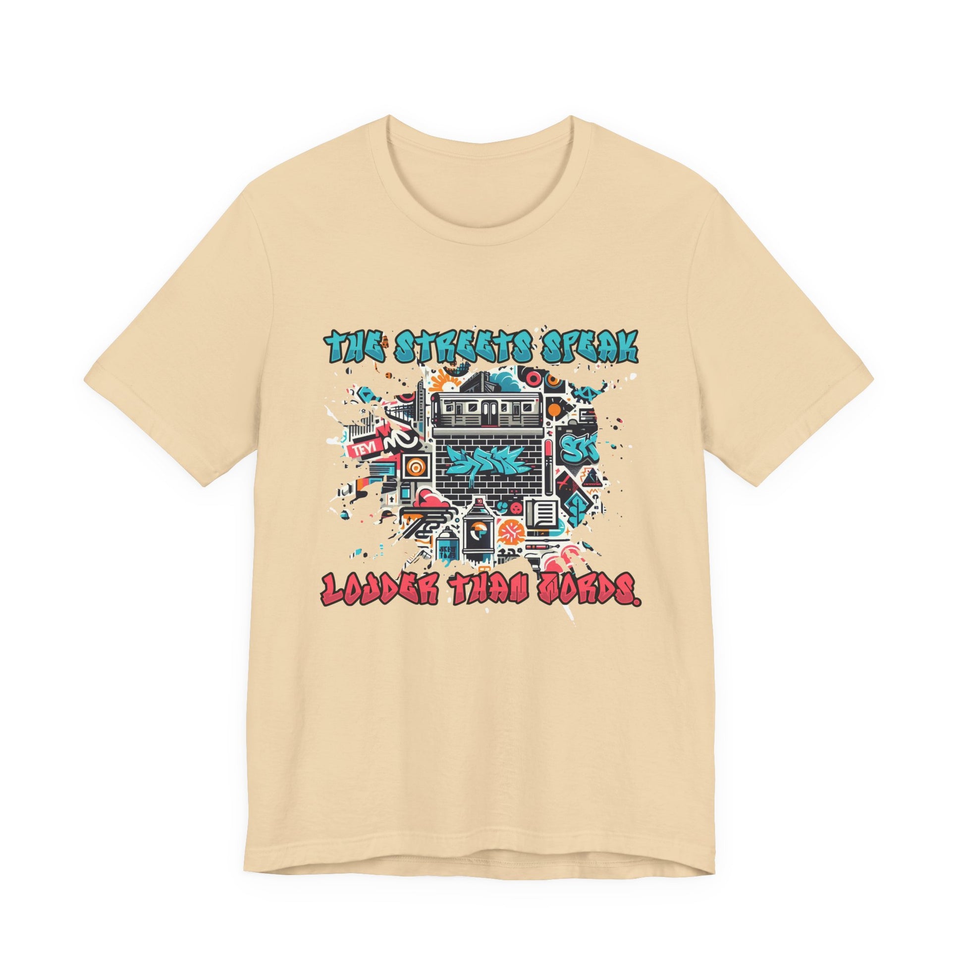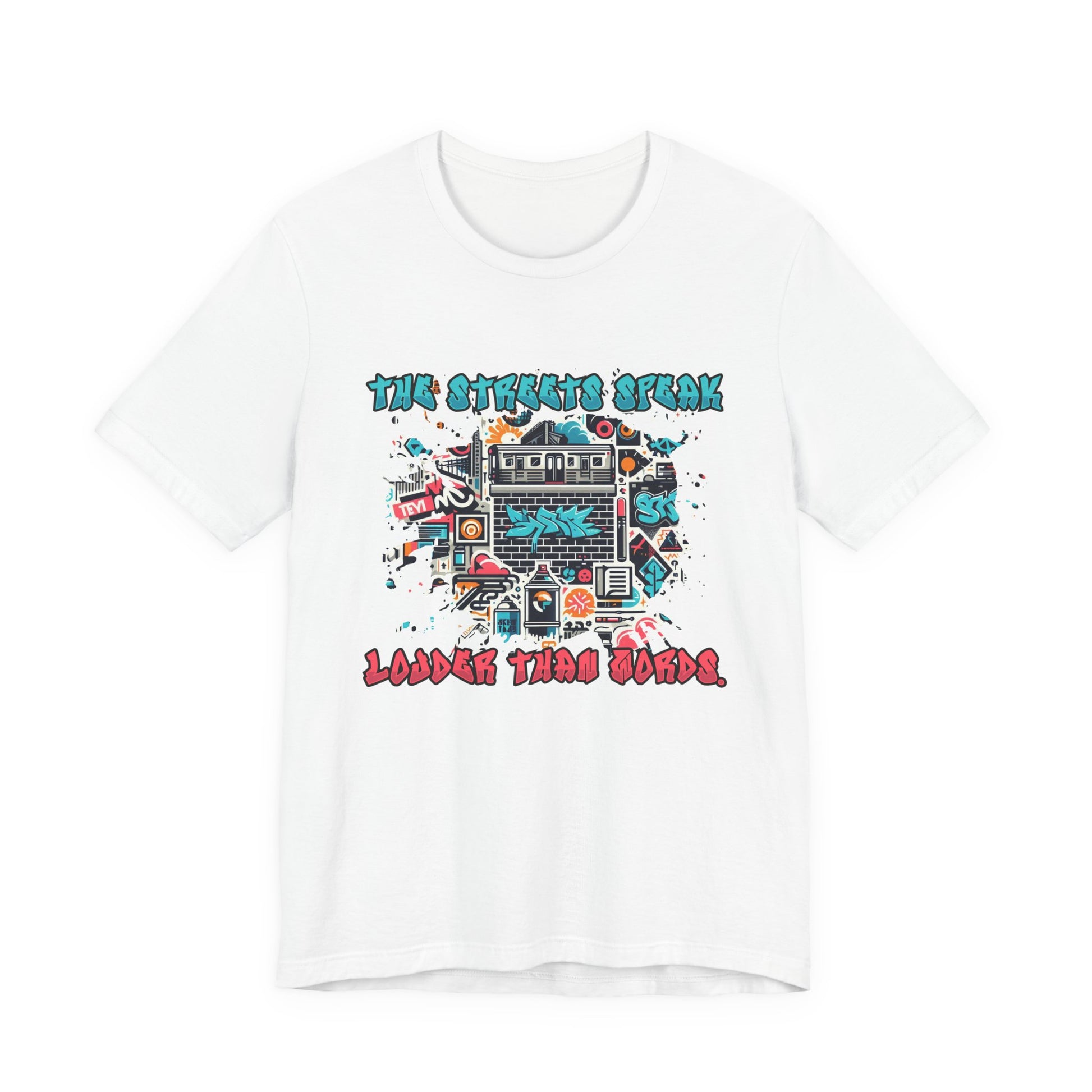 The Streets Speak Louder Than Words Tshirt – Cityscape with Graffiti Street Art Revolution