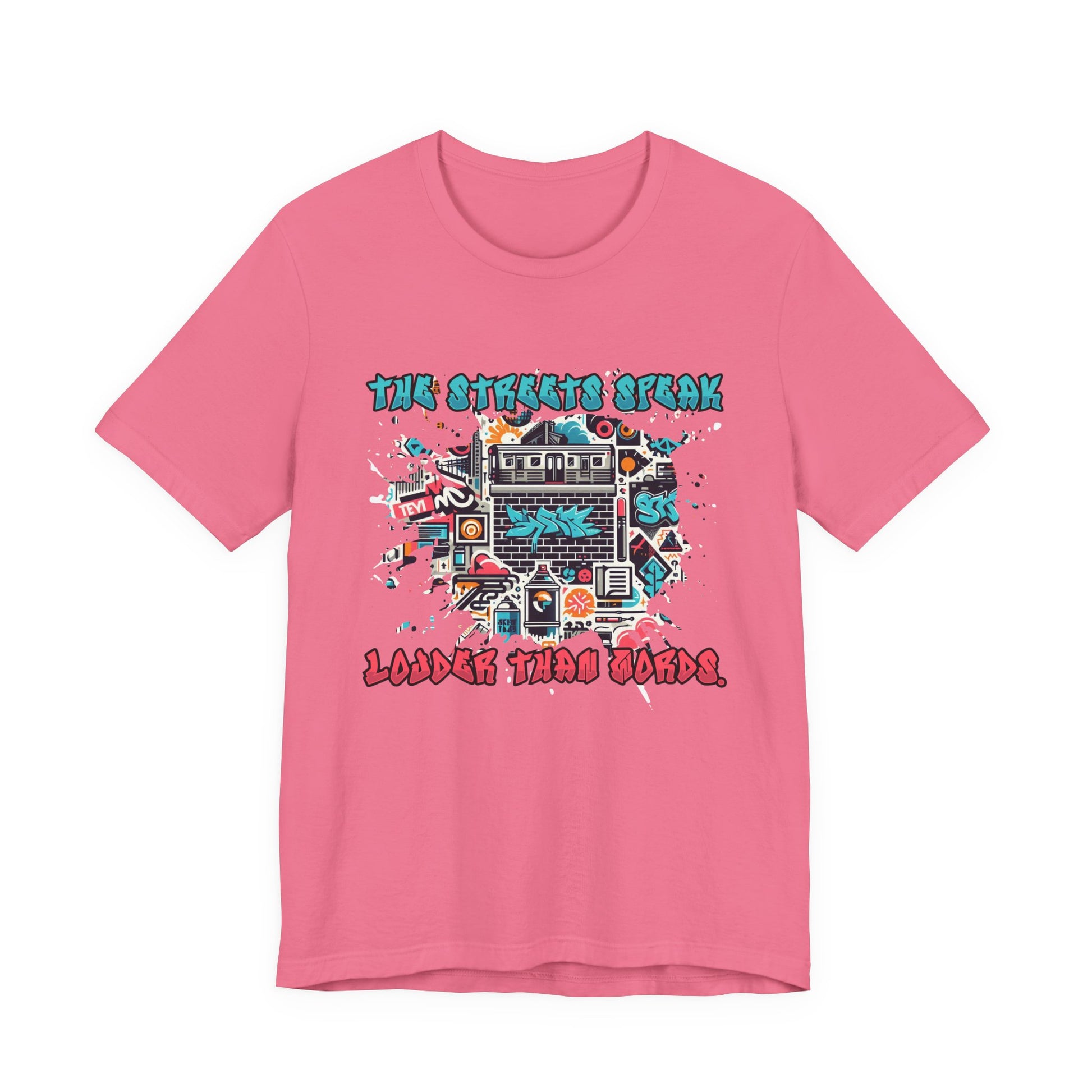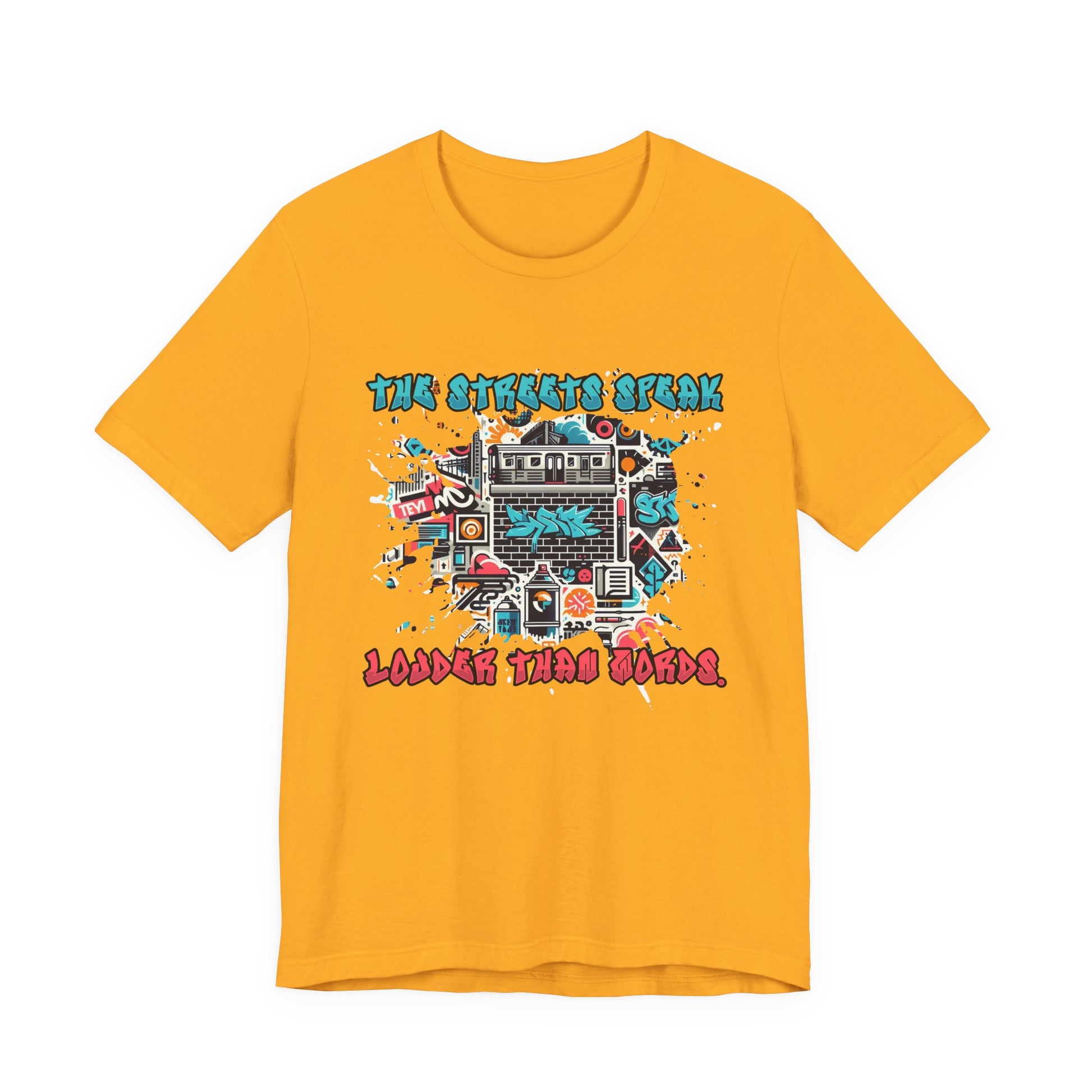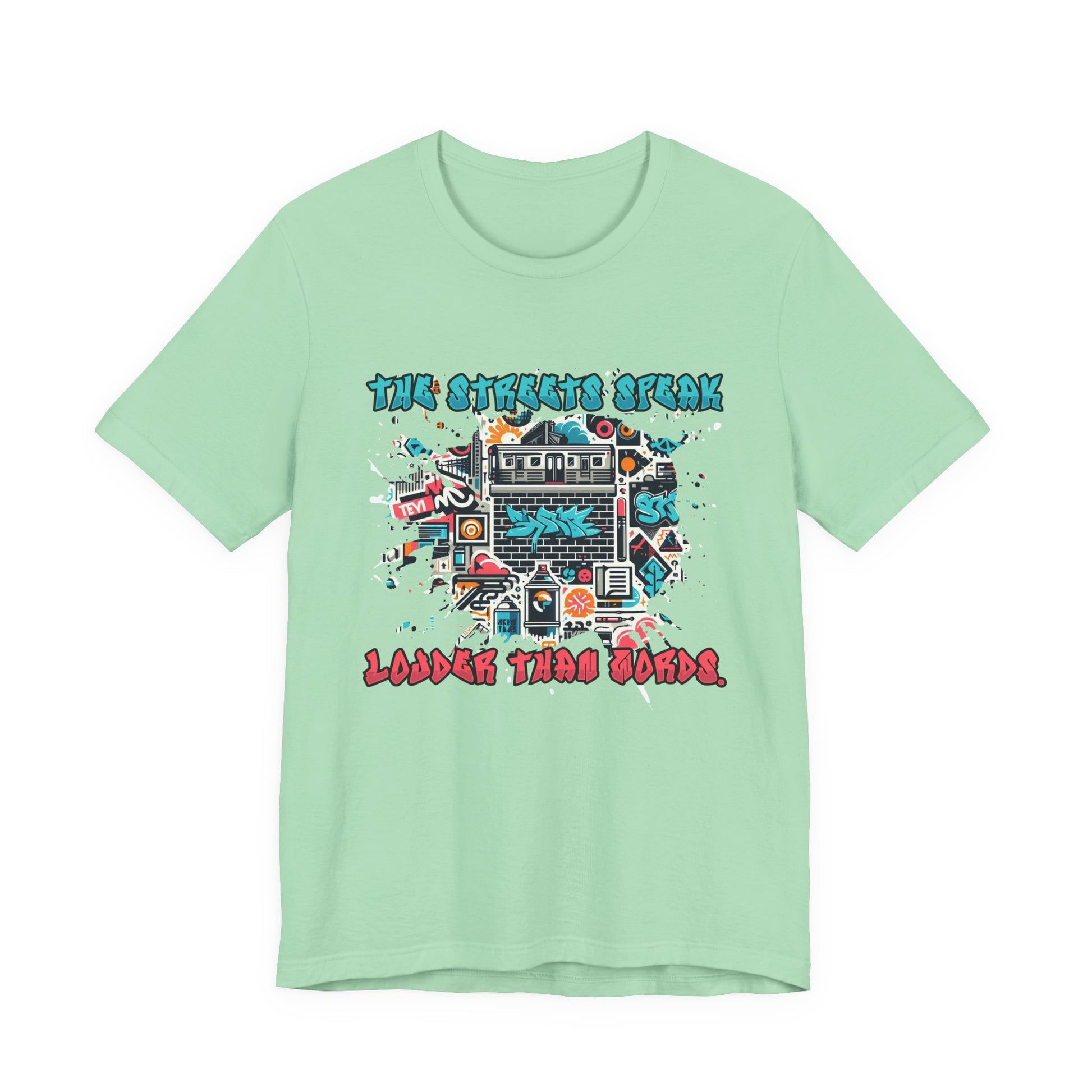 The Streets Speak Louder Than Words Tshirt – Cityscape with Graffiti Street Art Revolution