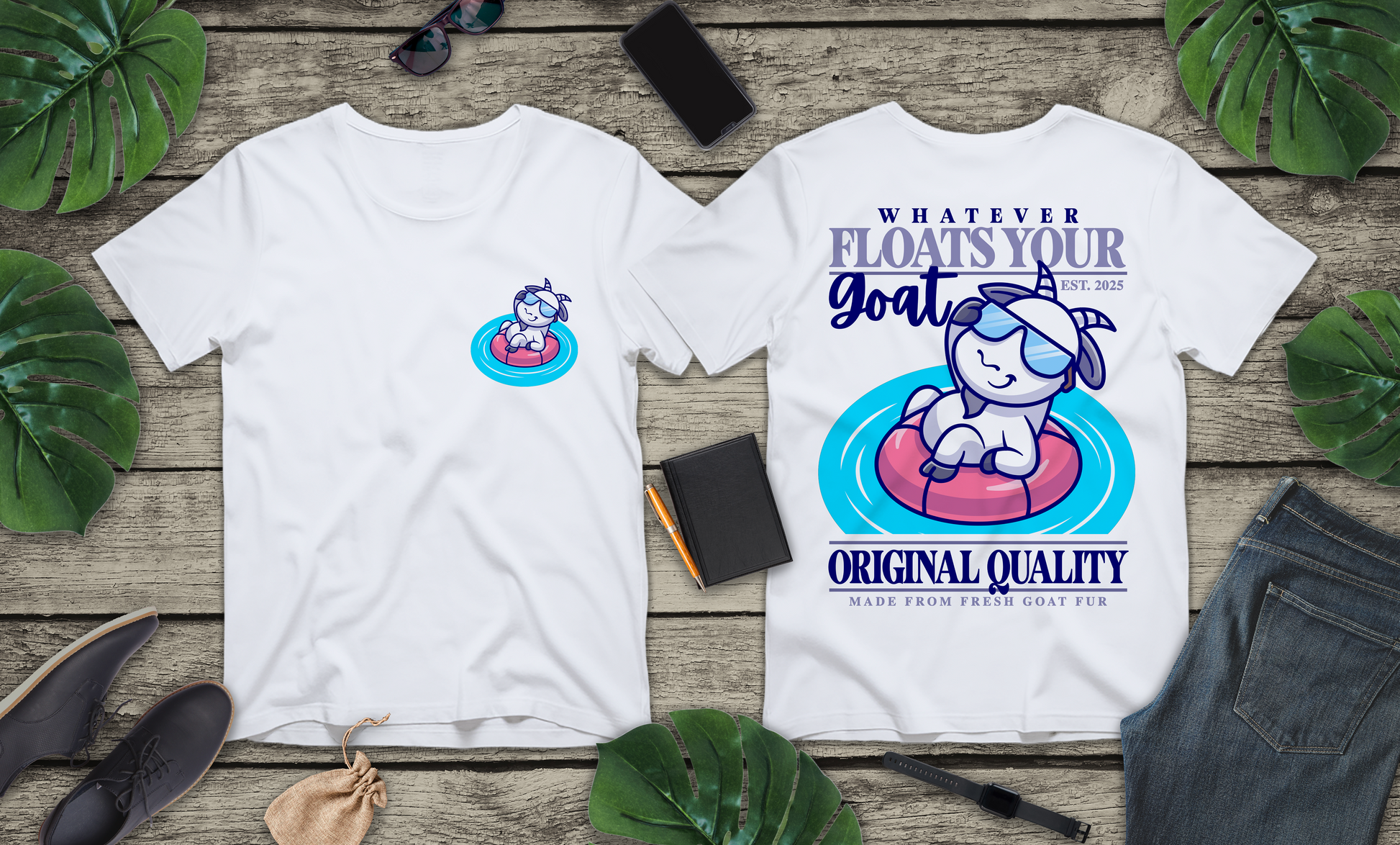 Relax in style with this fun and quirky t-shirt featuring a cool goat floating on an air tube in the water, sporting sunglasses and a laid-back attitude. The playful text “Whatever Floats Your Goat” adds a humorous twist perfect for animal lovers, summer vibes, and casual wear. Made from soft, breathable fabric, this tee is great for pool parties, beach days, or as a lighthearted gift for goat fans and anyone who loves to chill.